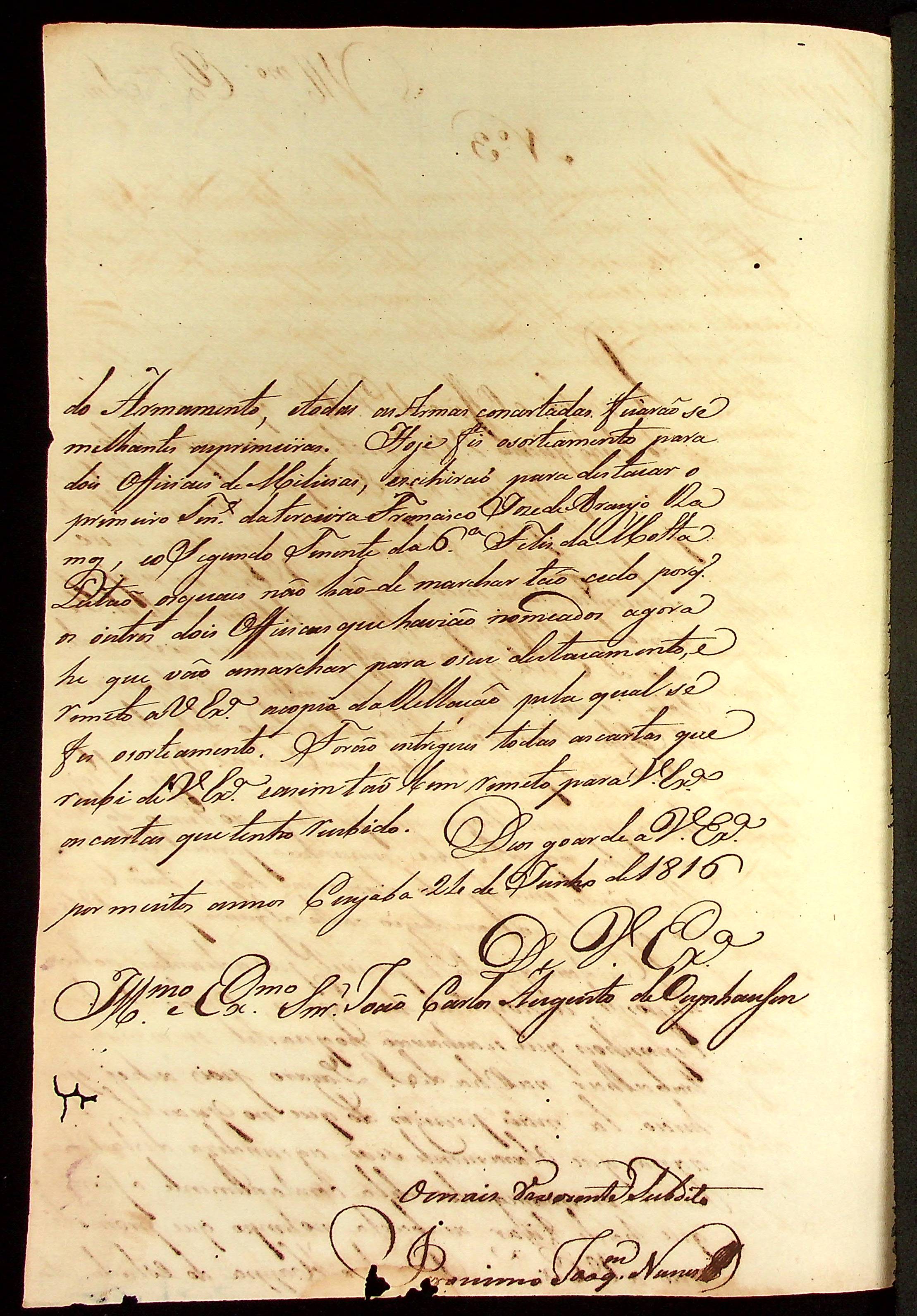 CARTA de Jerônimo Joaquim Nunes ao [Governador e Capitão-General da Capitania de Mato Grosso] João Carlos Augusto d’Oeynhausen e Gravenberg.