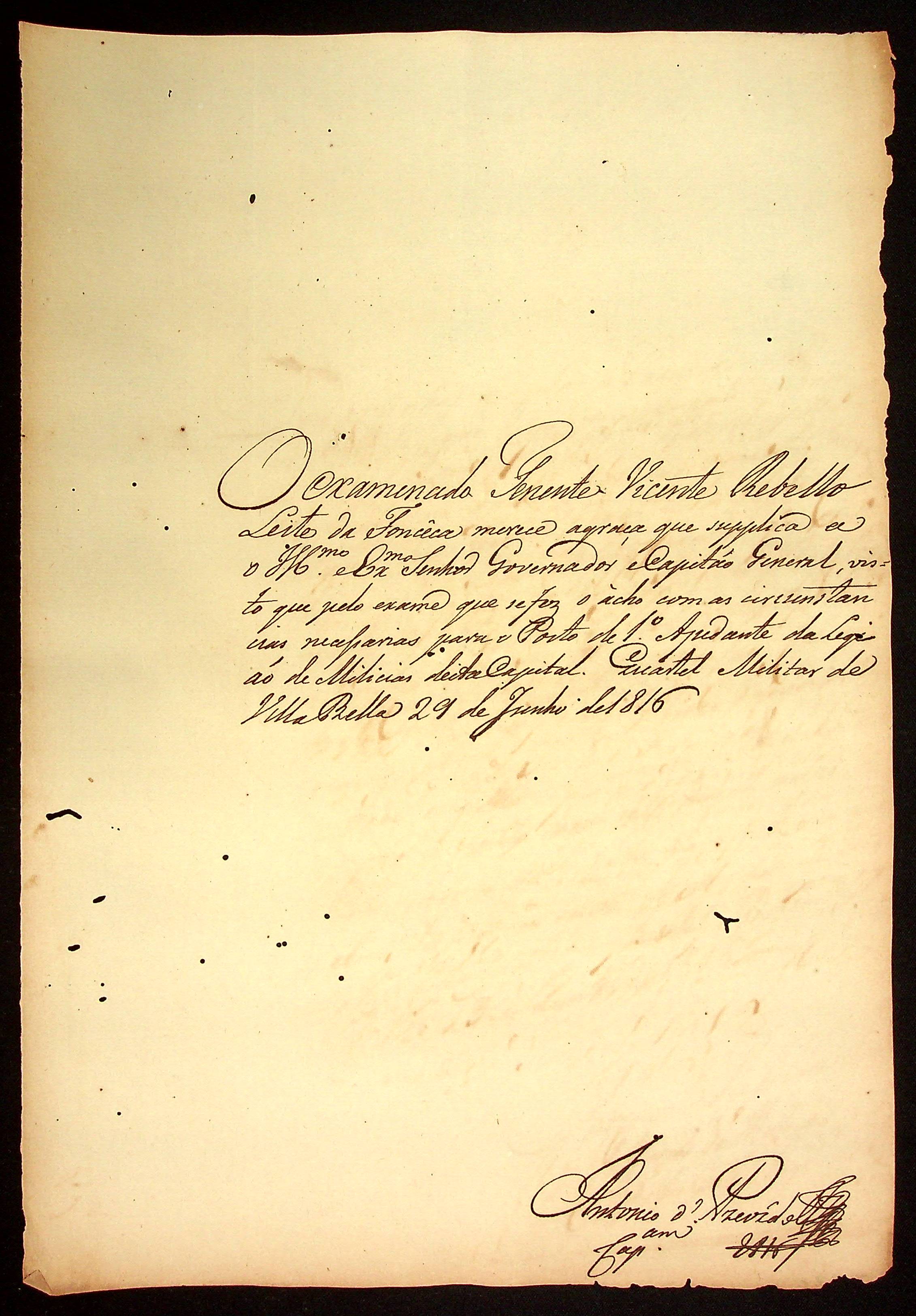 CARTA do Coronel Comandante da Legião Victorino Lopes de Macedo ao [Governador e Capitão-General da Capitania de Mato Grosso João Carlos Augusto d’Oeynhausen e Gravenberg].