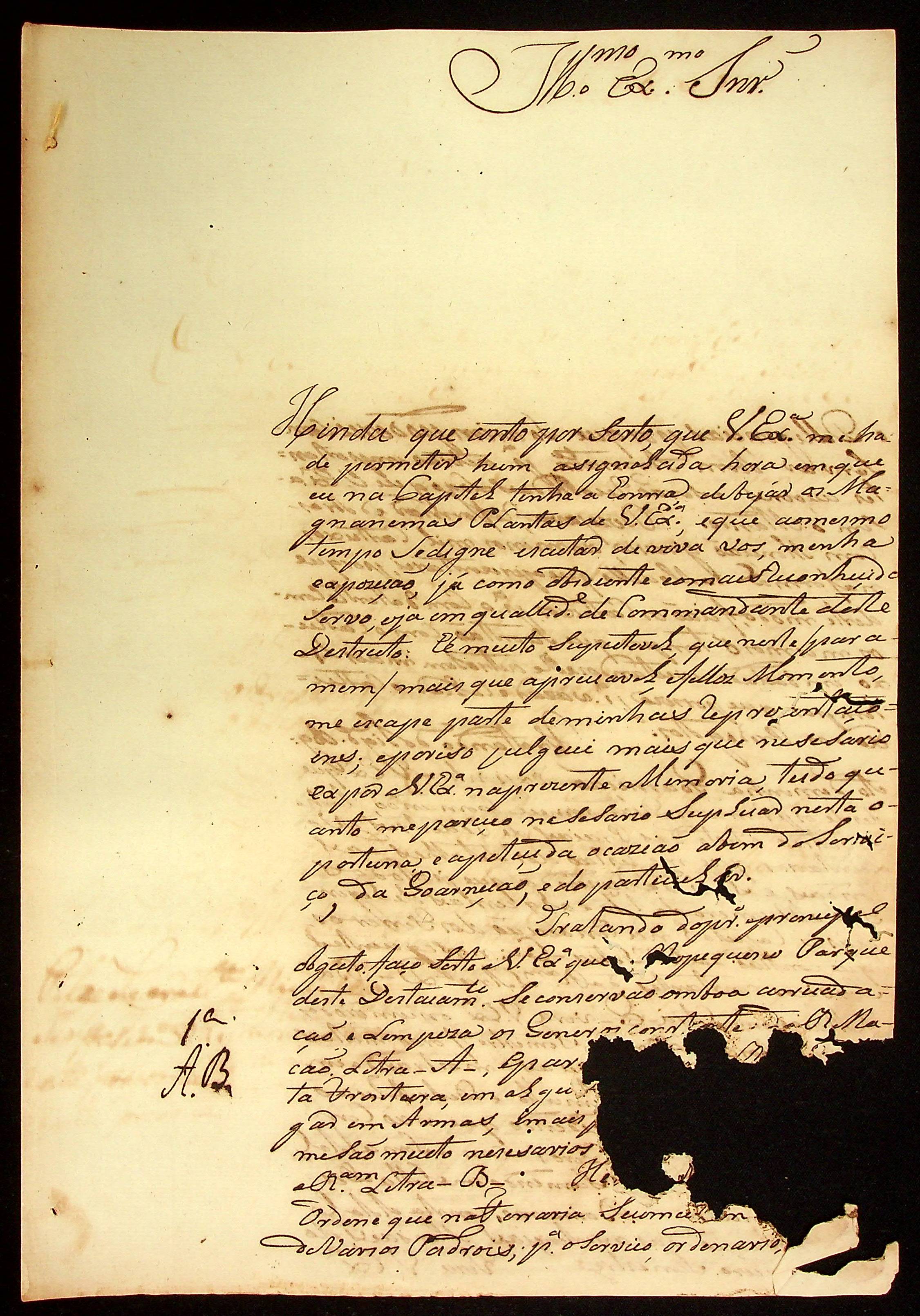 CARTA do [Alferes Comandante] Luiz Antônio de Souza ao [Governador e Capitão-General da Capitania de Mato Grosso João Carlos Augusto d’Oeynhausen e Gravenberg].