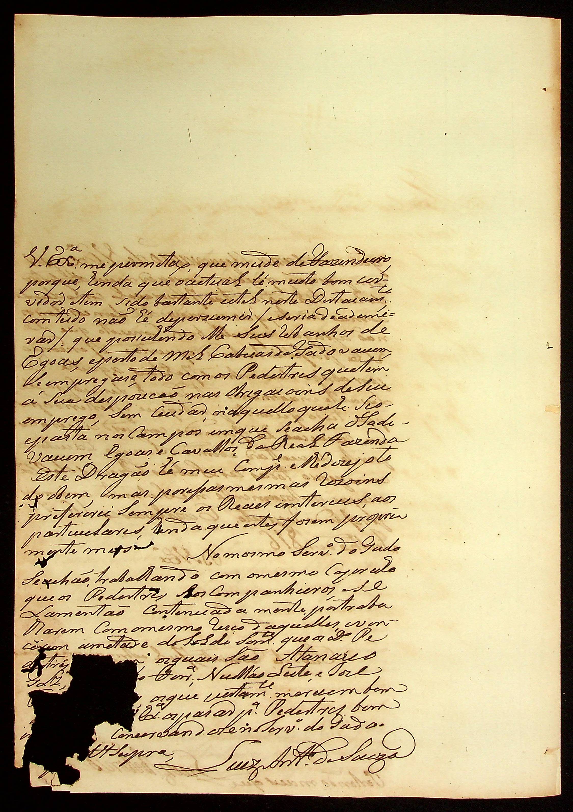 CARTA do [Alferes Comandante] Luiz Antônio de Souza ao [Governador e Capitão-General da Capitania de Mato Grosso João Carlos Augusto d’Oeynhausen e Gravenberg].