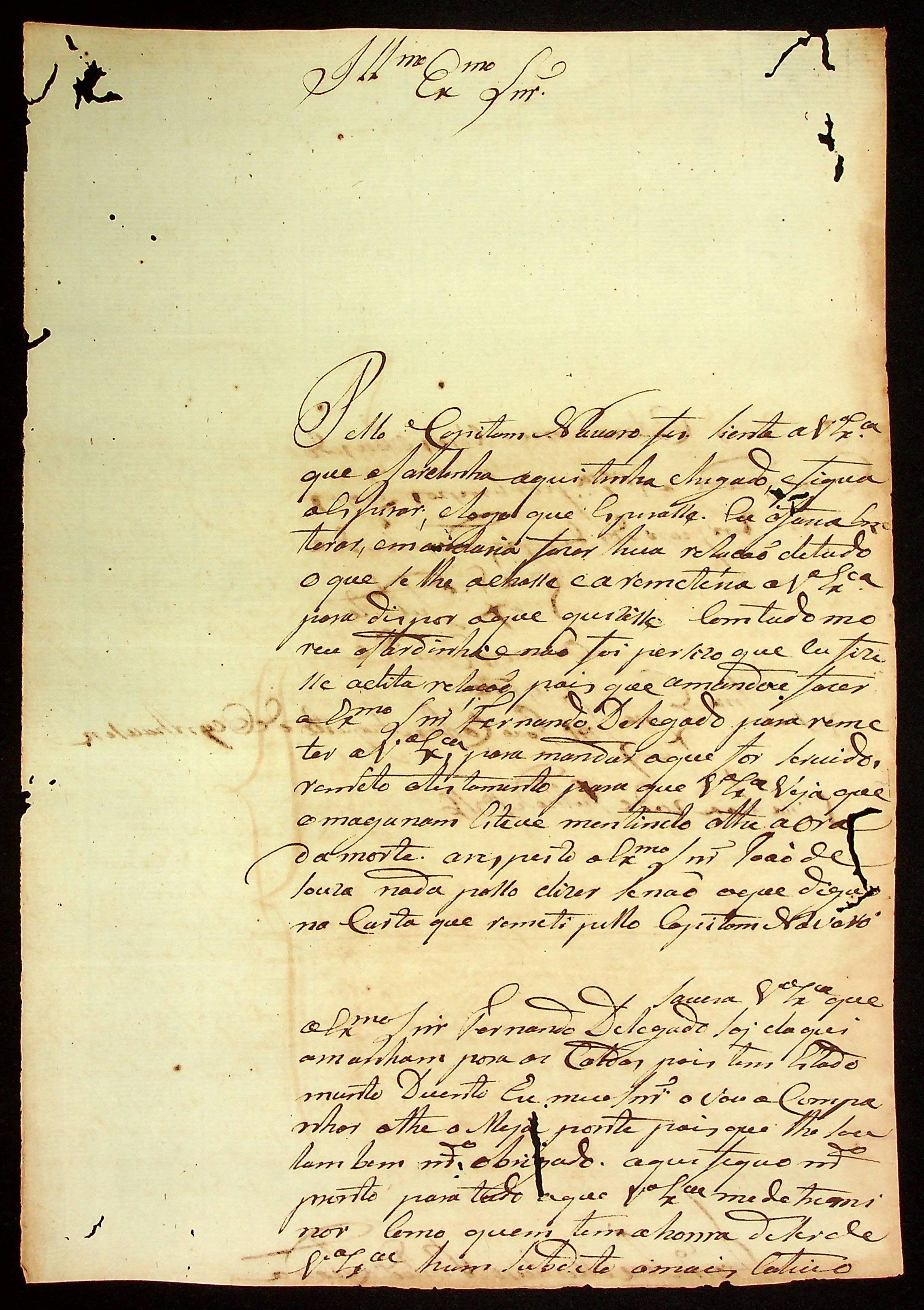 CARTA de Francisco José Monteiro Pinto Lacerda ao [Governador e Capitão-General da Capitania de Mato Grosso] João Carlos Augusto d’Oeynhausen e Gravenberg.