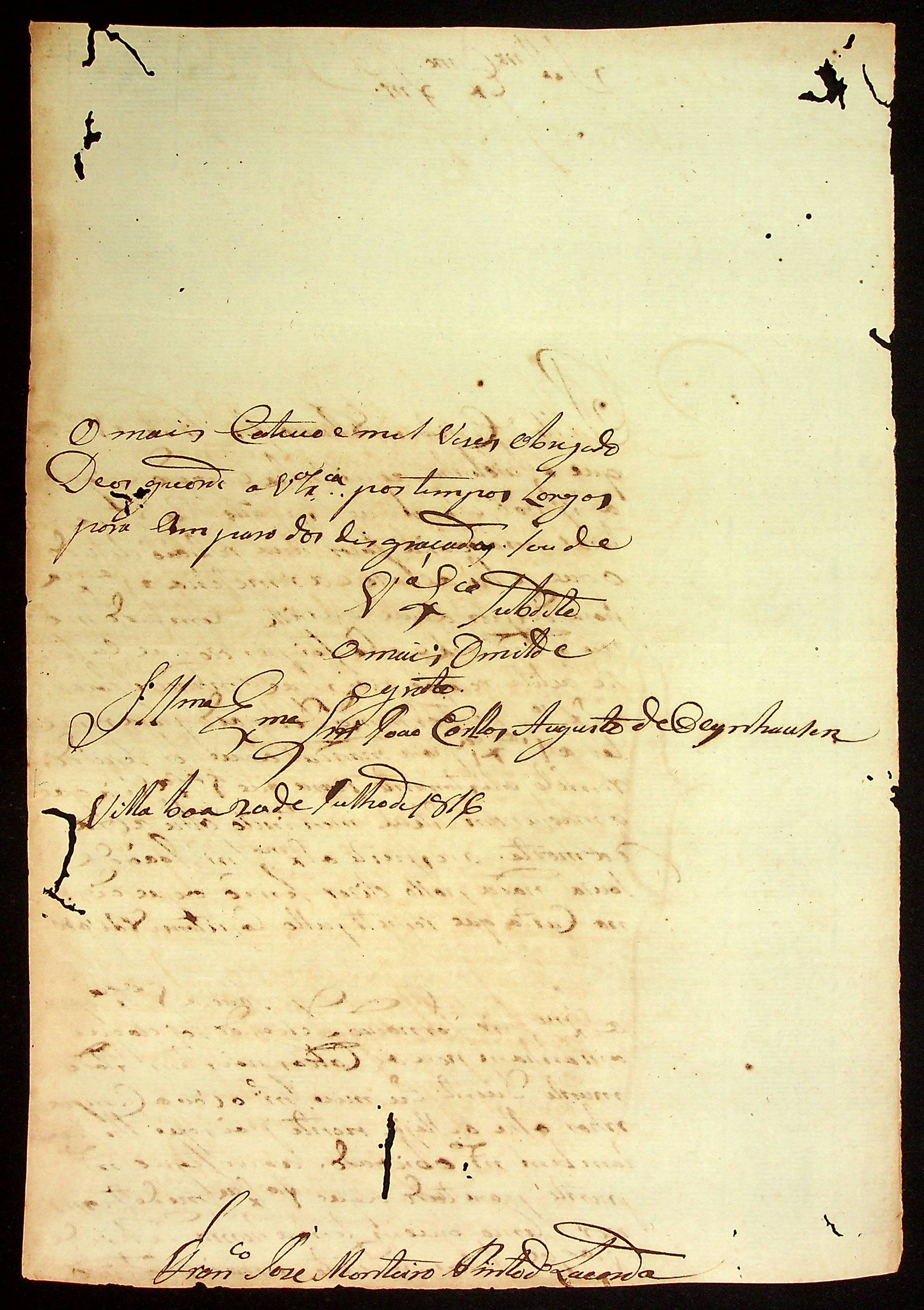 CARTA de Francisco José Monteiro Pinto Lacerda ao [Governador e Capitão-General da Capitania de Mato Grosso] João Carlos Augusto d’Oeynhausen e Gravenberg.