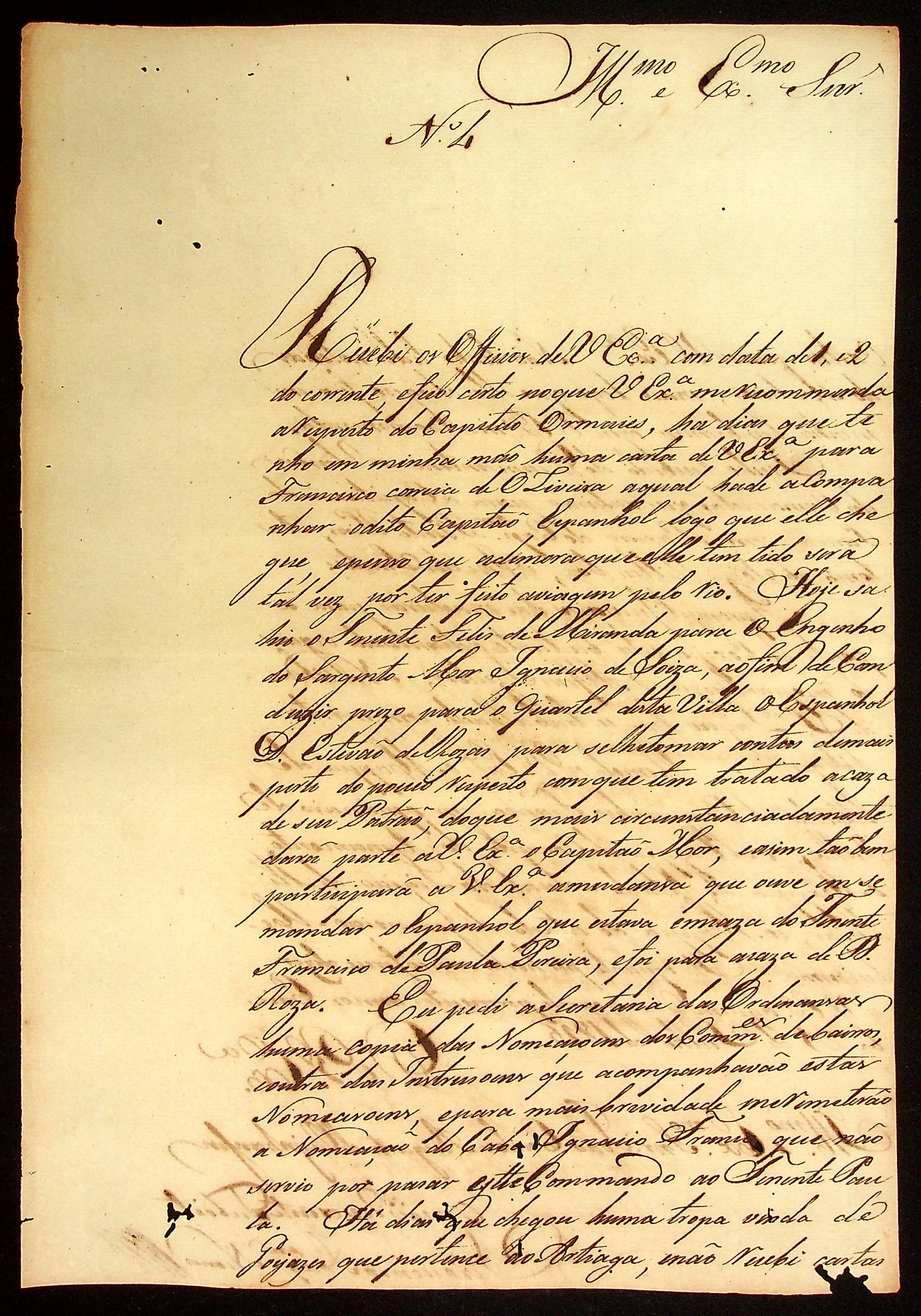 CARTA de Jerônimo Joaquim Nunes ao [Governador e Capitão-General da Capitania de Mato Grosso] João Carlos Augusto d’Oeynhausen e Gravenberg.