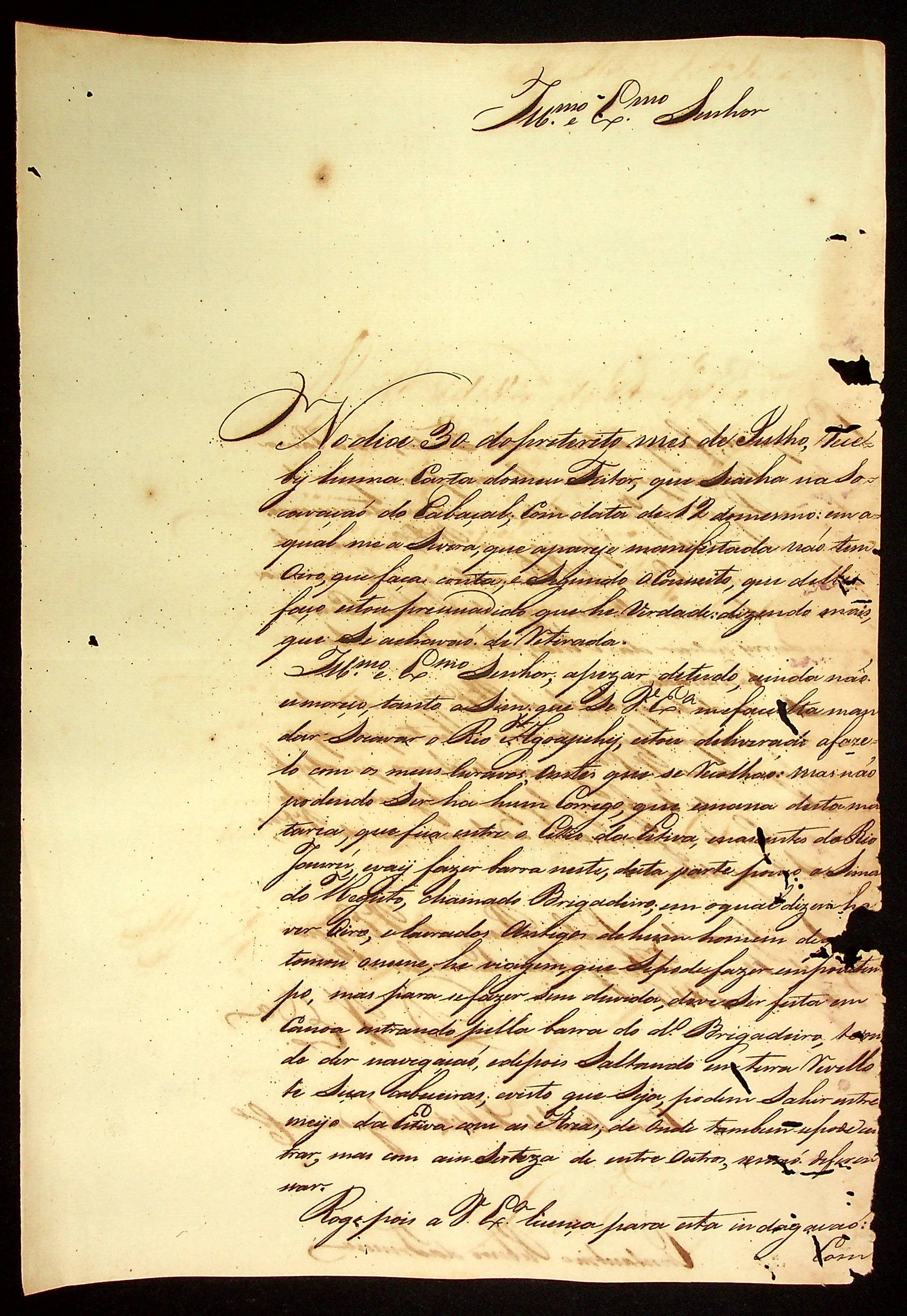 CARTA do [Comandante] Constantino Ribeiro da Fonseca ao [Governador e Capitão-General da Capitania de Mato Grosso João Carlos Augusto d’Oeynhausen e Gravenberg].