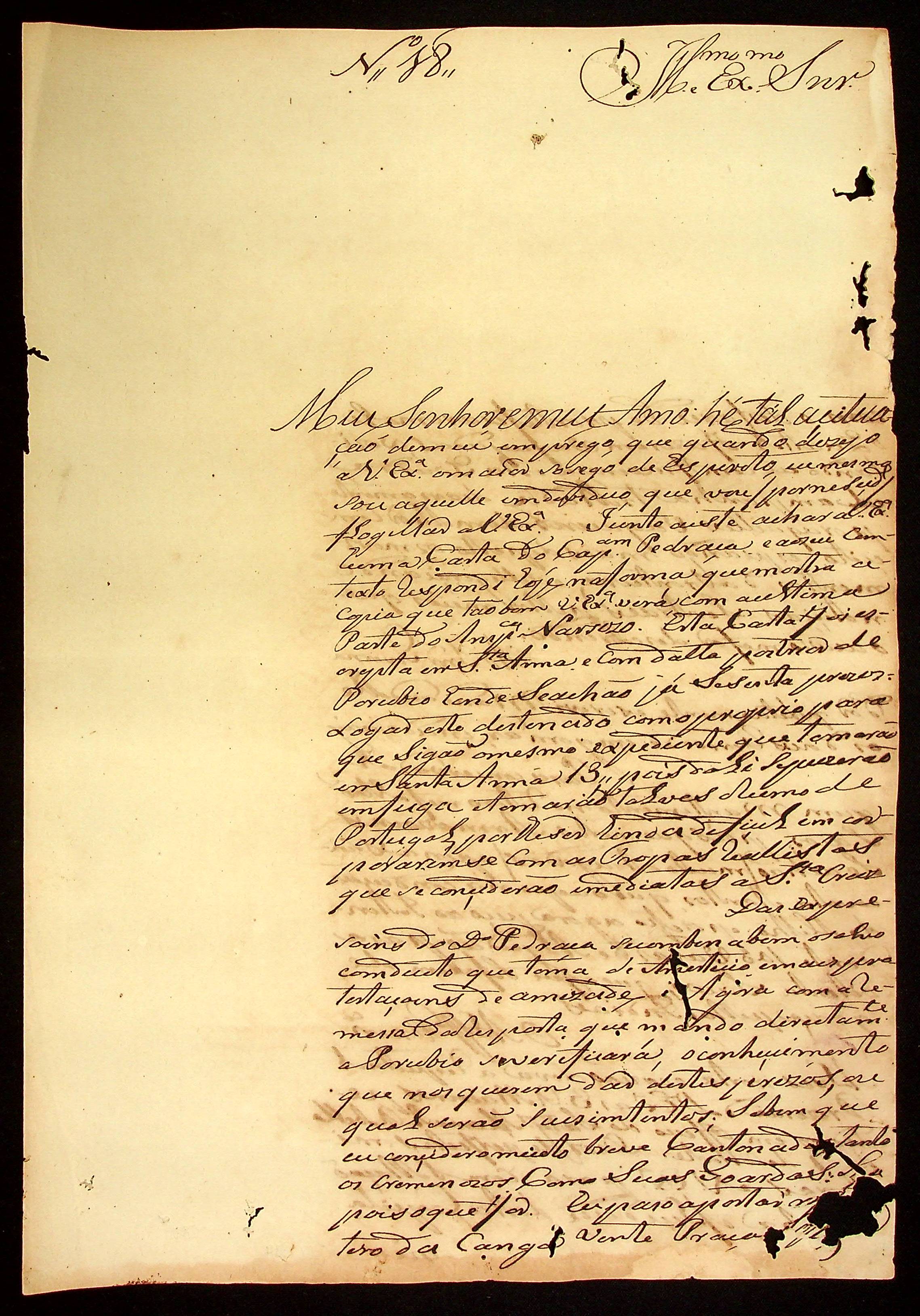CARTA do [Alferes Comandante] Luiz Antônio de Souza ao [Governador e Capitão-General da Capitania de Mato Grosso] João Carlos Augusto d’Oeynhausen e Gravenberg.