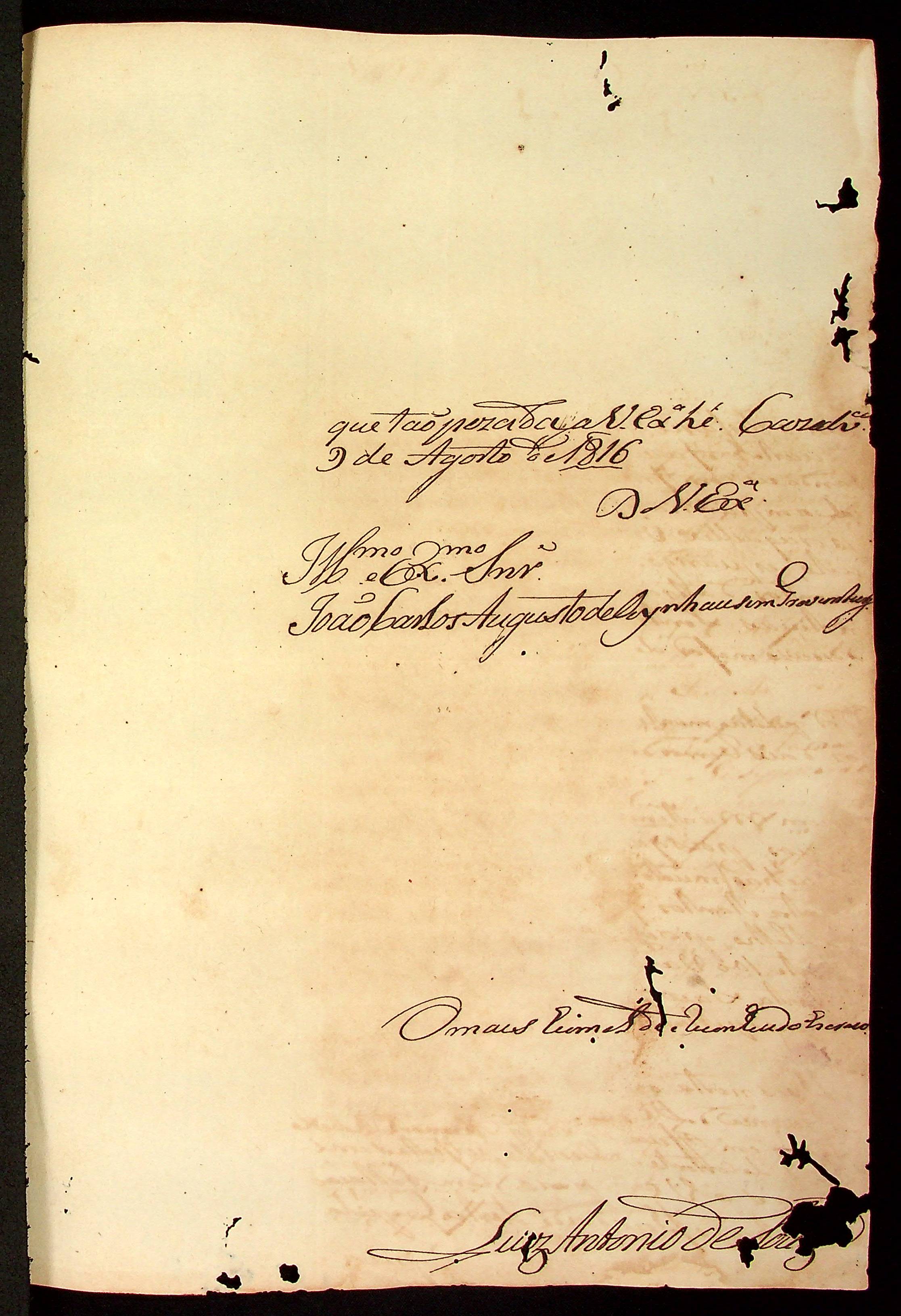 CARTA do [Alferes Comandante] Luiz Antônio de Souza ao [Governador e Capitão-General da Capitania de Mato Grosso] João Carlos Augusto d’Oeynhausen e Gravenberg.