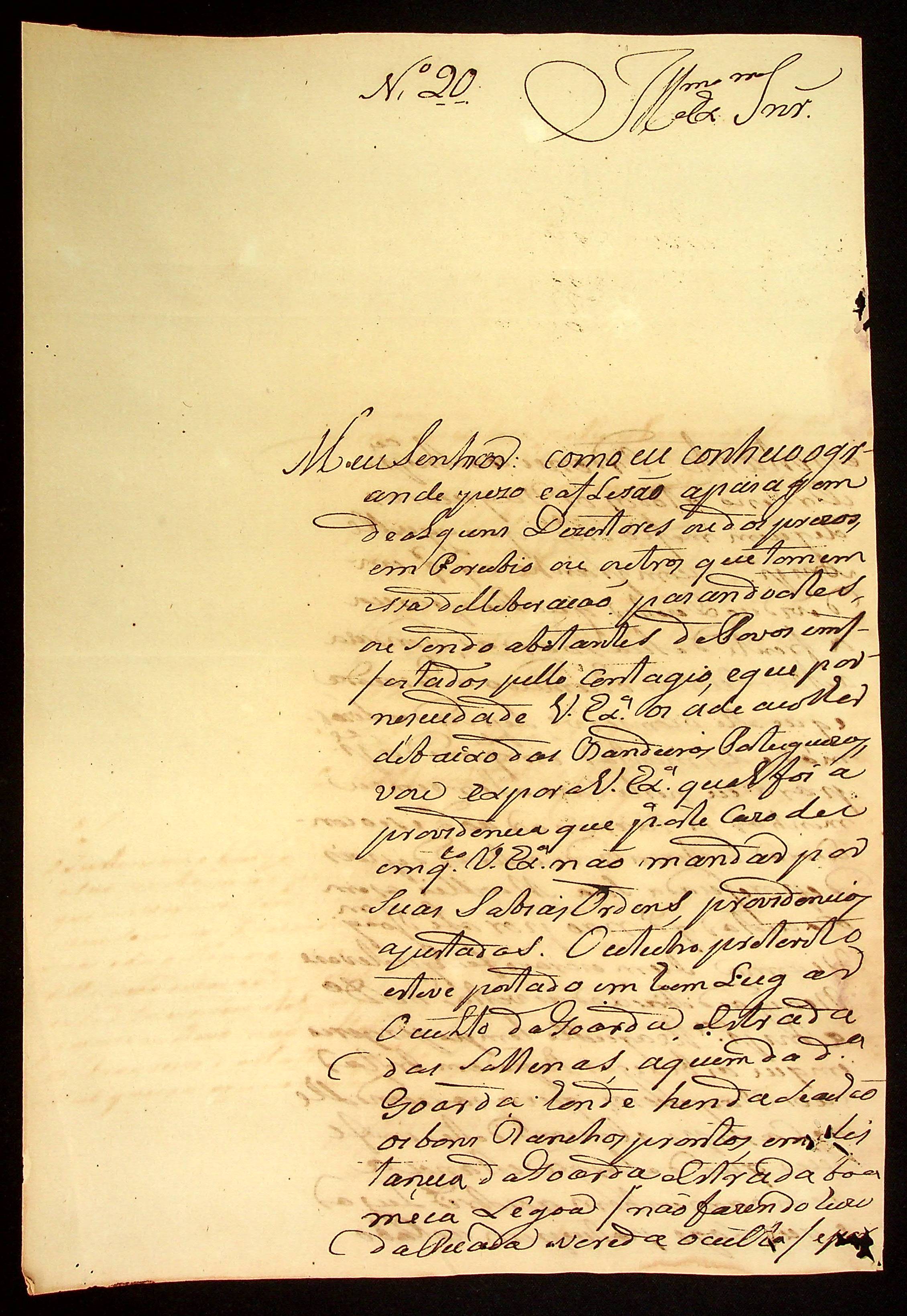 CARTA do [Alferes Comandante] Luiz Antônio de Souza ao [Governador e Capitão-General da Capitania de Mato Grosso] João Carlos Augusto d’Oeynhausen e Gravenberg.