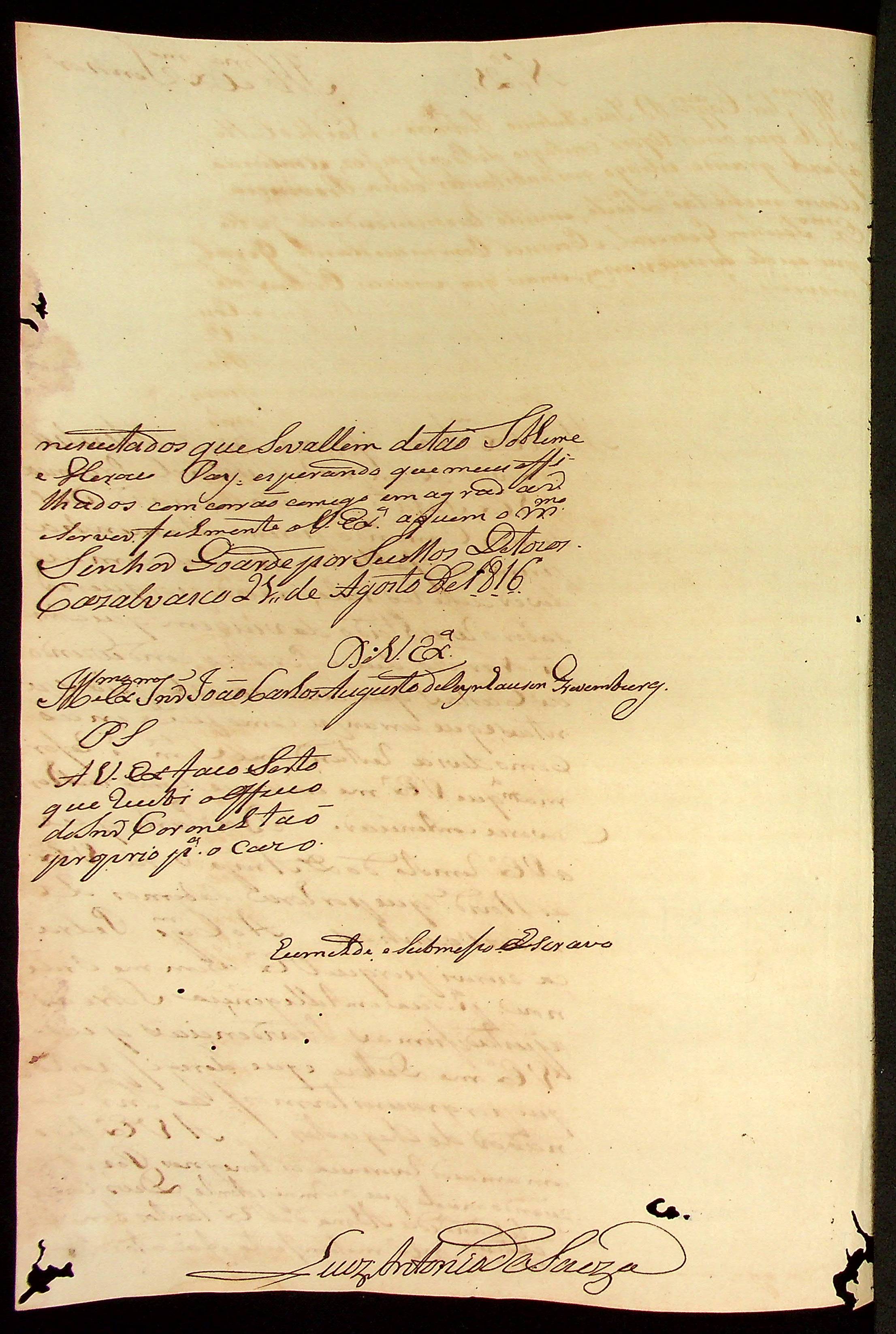 CARTA do [Alferes Comandante] Luiz Antônio de Souza ao [Governador e Capitão-General da Capitania de Mato Grosso] João Carlos Augusto d’Oeynhausen e Gravenberg.