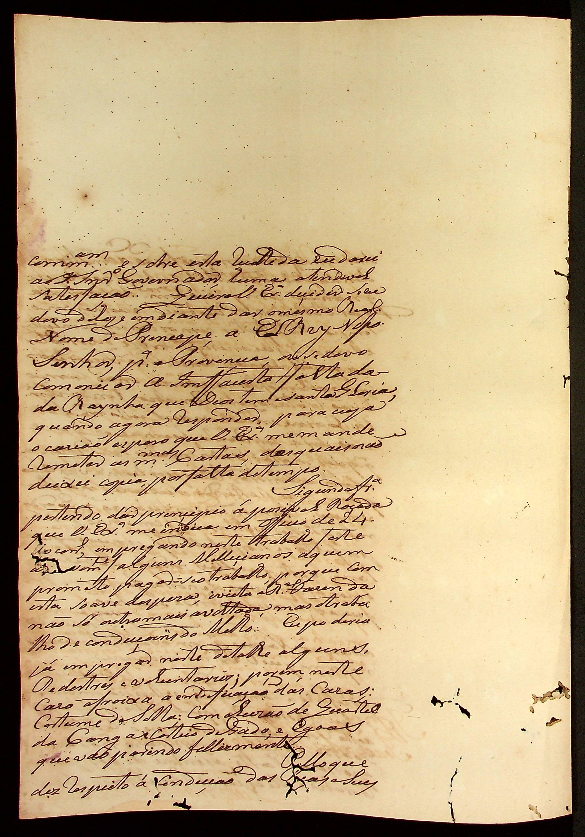 CARTA do [Alferes Comandante] Luiz Antônio de Souza ao [Governador e Capitão-General da Capitania de Mato Grosso] João Carlos Augusto d’Oeynhausen e Gravenberg.