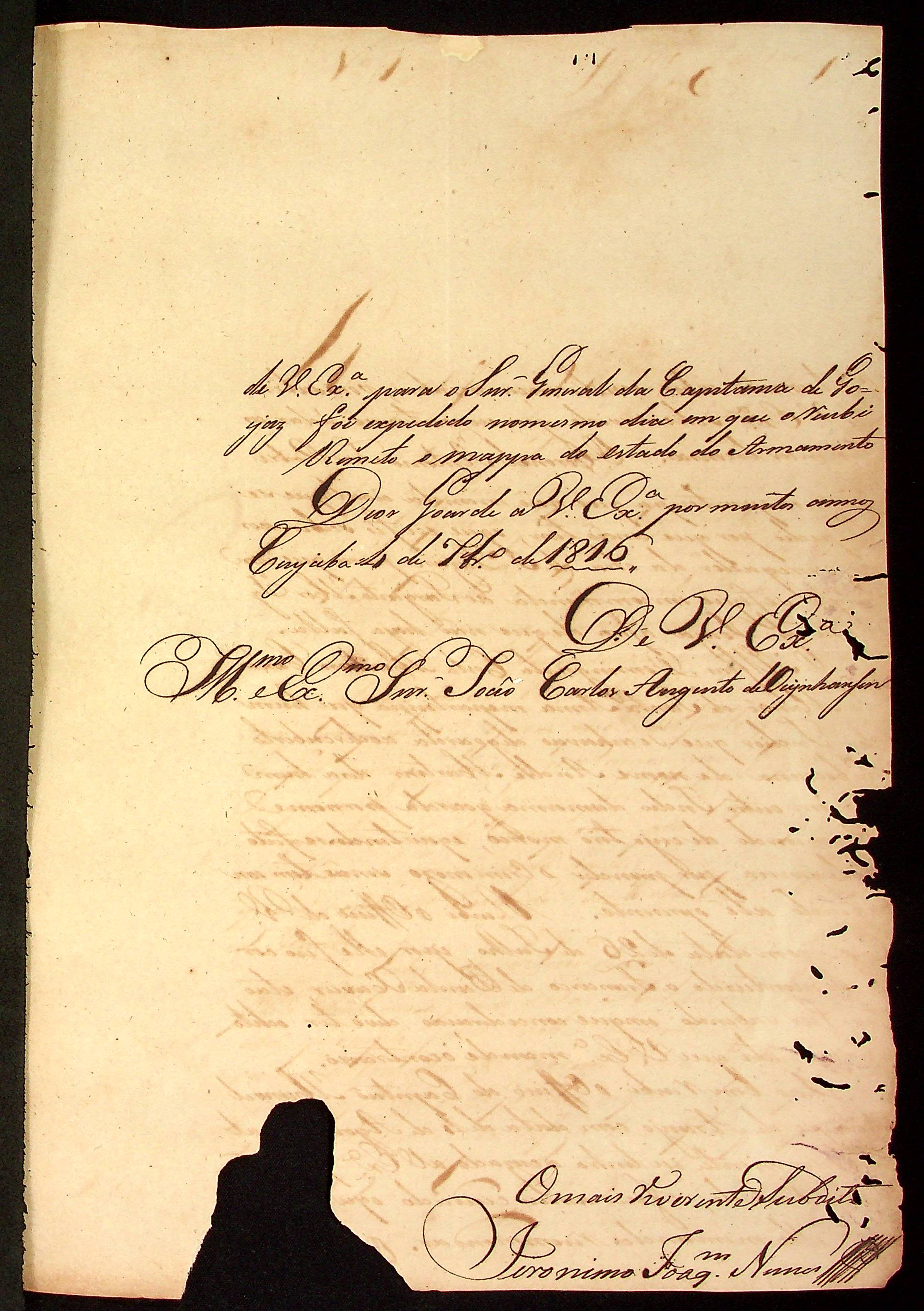 CARTA de Jerônimo Joaquim Nunes ao [Governador e Capitão-General da Capitania de Mato Grosso] João Carlos Augusto d’Oeynhausen e Gravenberg.