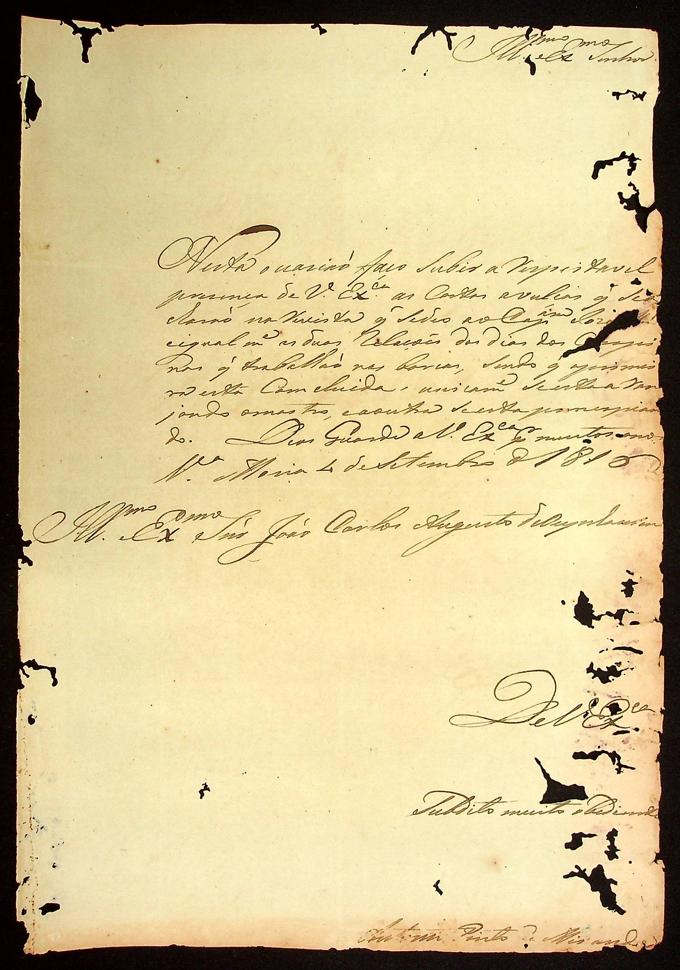 CARTA do [Capitão] Antônio Pinto de Miranda ao [Governador e Capitão-General da Capitania de Mato Grosso] João Carlos Augusto d’Oeynhausen e Gravenberg.