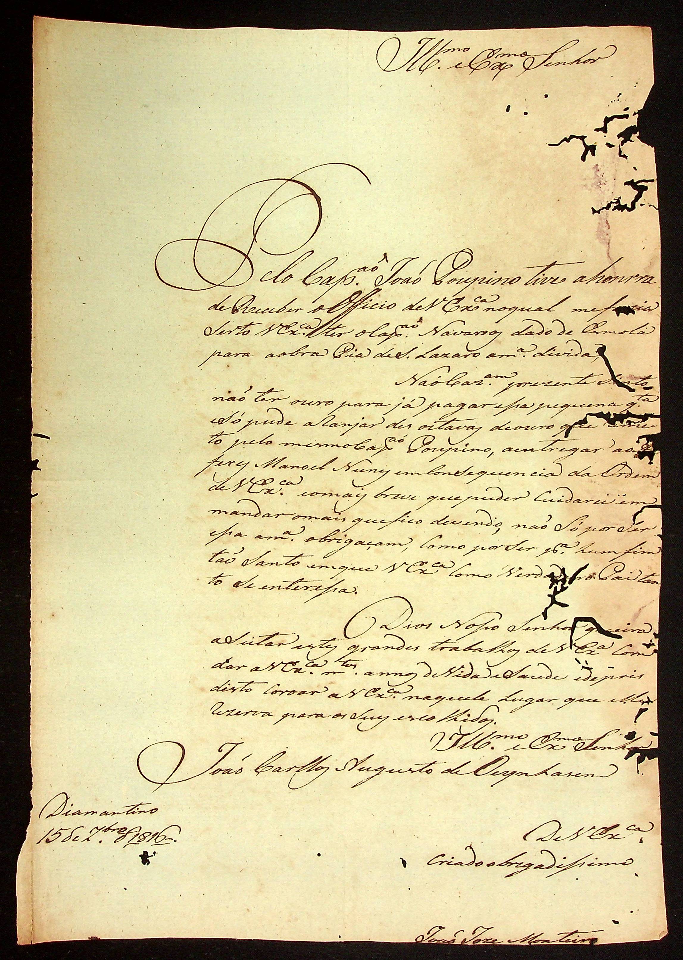 CARTA de João José Monteiro ao [Governador e Capitão-General da Capitania de Mato Grosso] João Carlos Augusto d’Oeynhausen e Gravenberg.