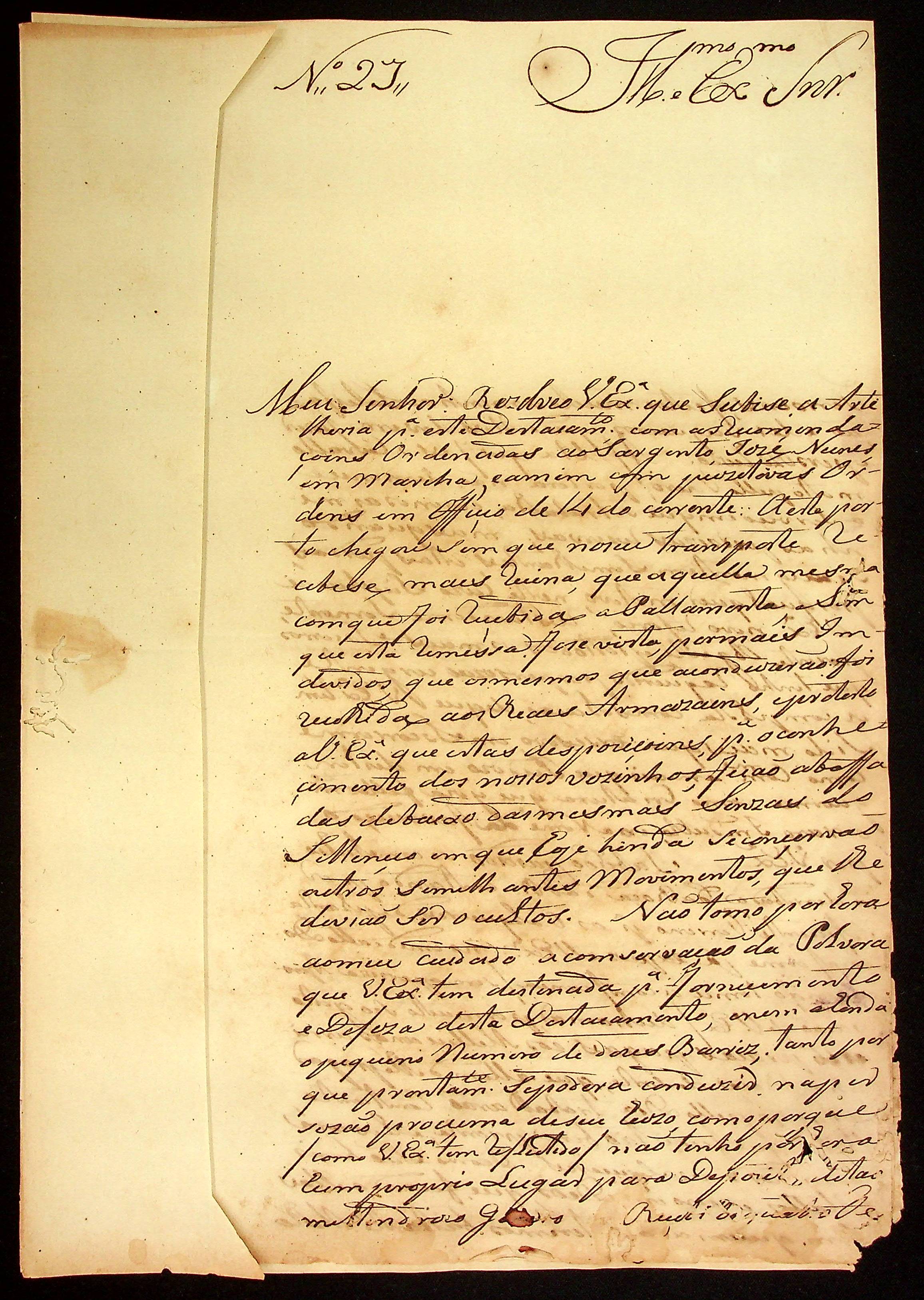 CARTA do [Alferes Comandante] Luiz Antônio de Souza ao [Governador e Capitão-General da Capitania de Mato Grosso] João Carlos Augusto d’Oeynhausen e Gravenberg.