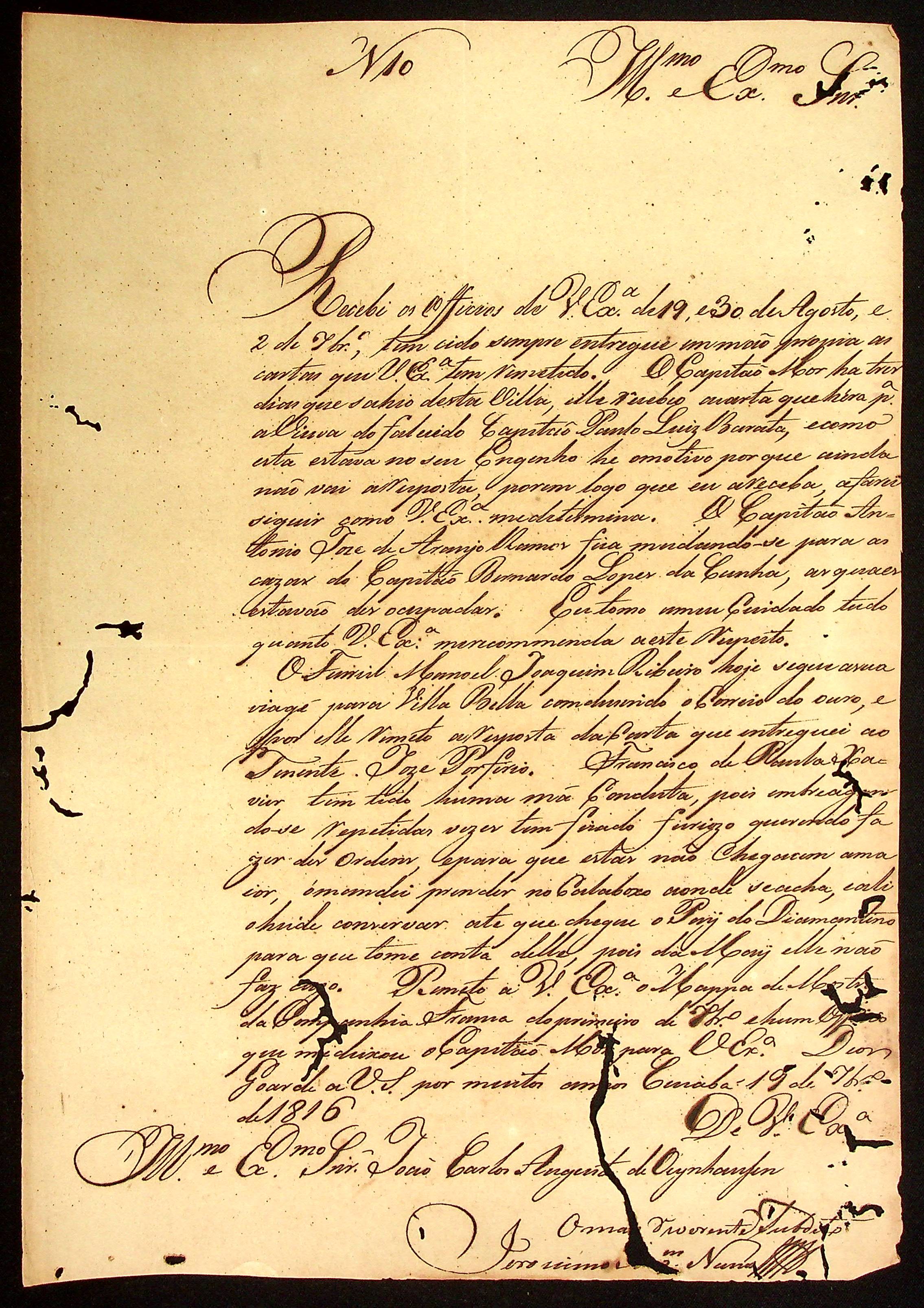 CARTA de Jerônimo Joaquim Nunes ao [Governador e Capitão-General da Capitania de Mato Grosso] João Carlos Augusto d’Oeynhausen e Gravenberg.