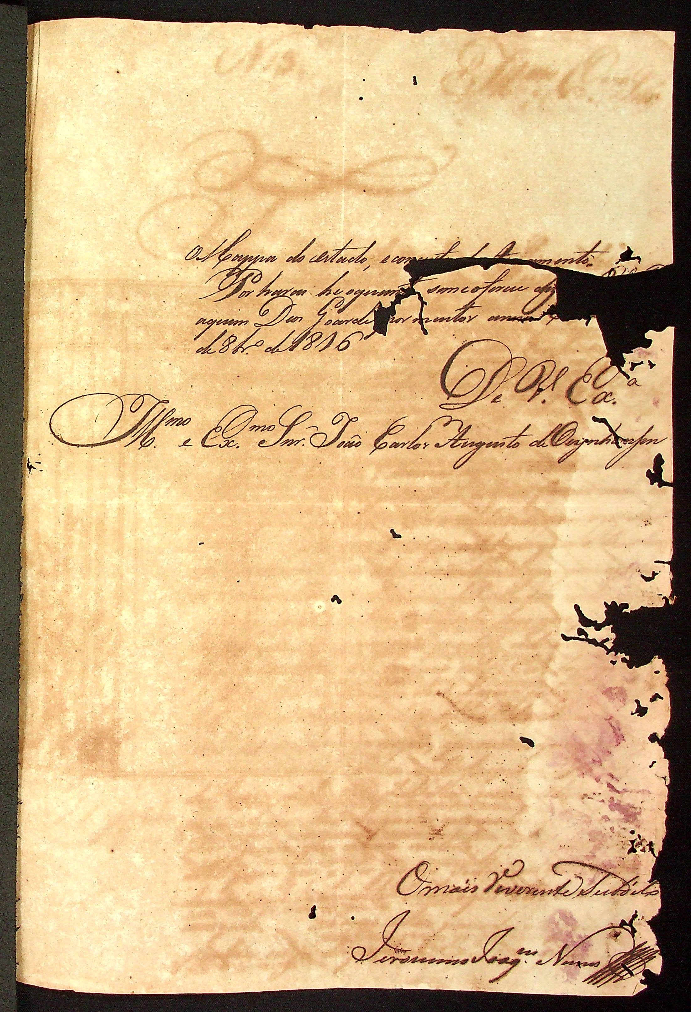 CARTA de Jerônimo Joaquim Nunes ao Governador e [Capitão-General da Capitania de Mato Grosso] João Carlos Augusto d’Oeynhausen e Gravenberg.