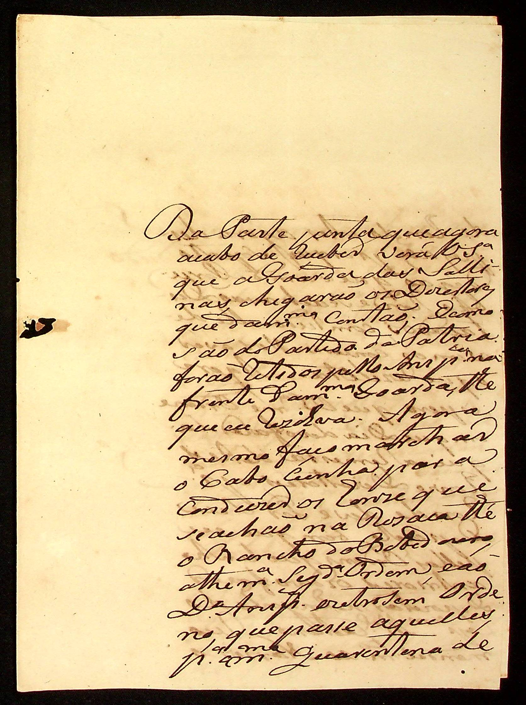 CARTA do Alferes Comandante Luiz Antônio de Souza ao Coronel Comandante Geral Victoriano Lopes de Macedo.