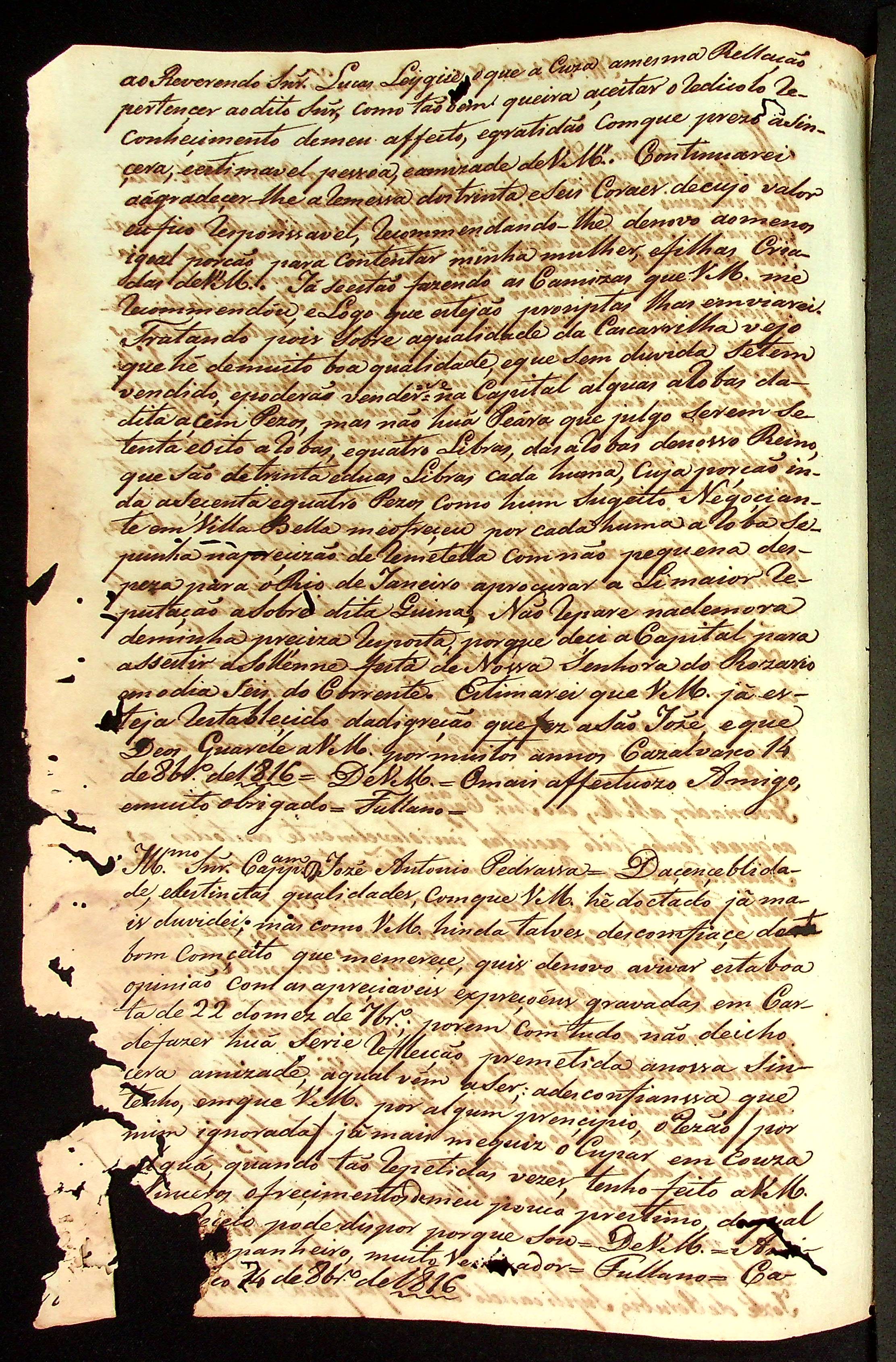 CARTA (cópia) [Comandante Luiz Antônio de Souza] à José Lourenço Justiniano.