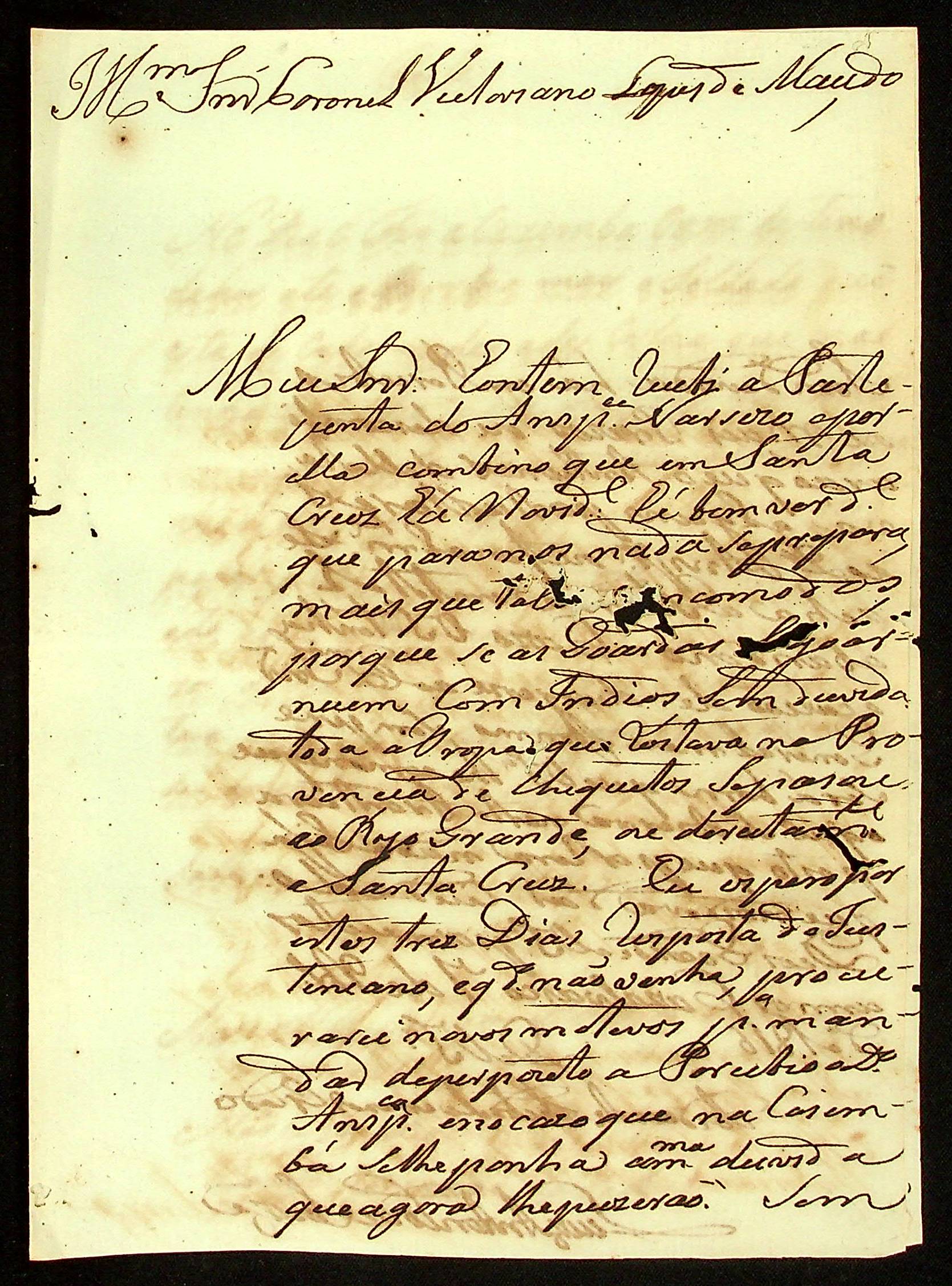 CARTA do [Alferes Comandante] Luiz Antônio de Souza ao Coronel Victoriano Lopes de Macedo.
