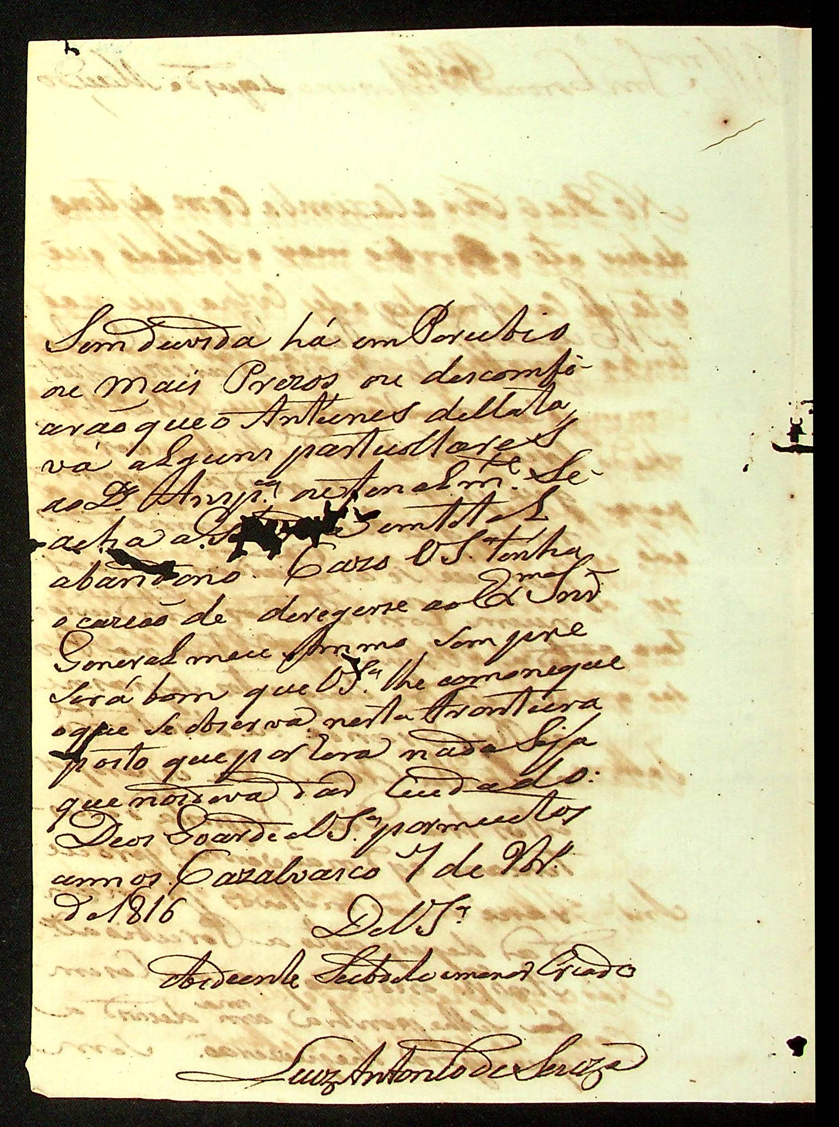 CARTA do [Alferes Comandante] Luiz Antônio de Souza ao Coronel Victoriano Lopes de Macedo.