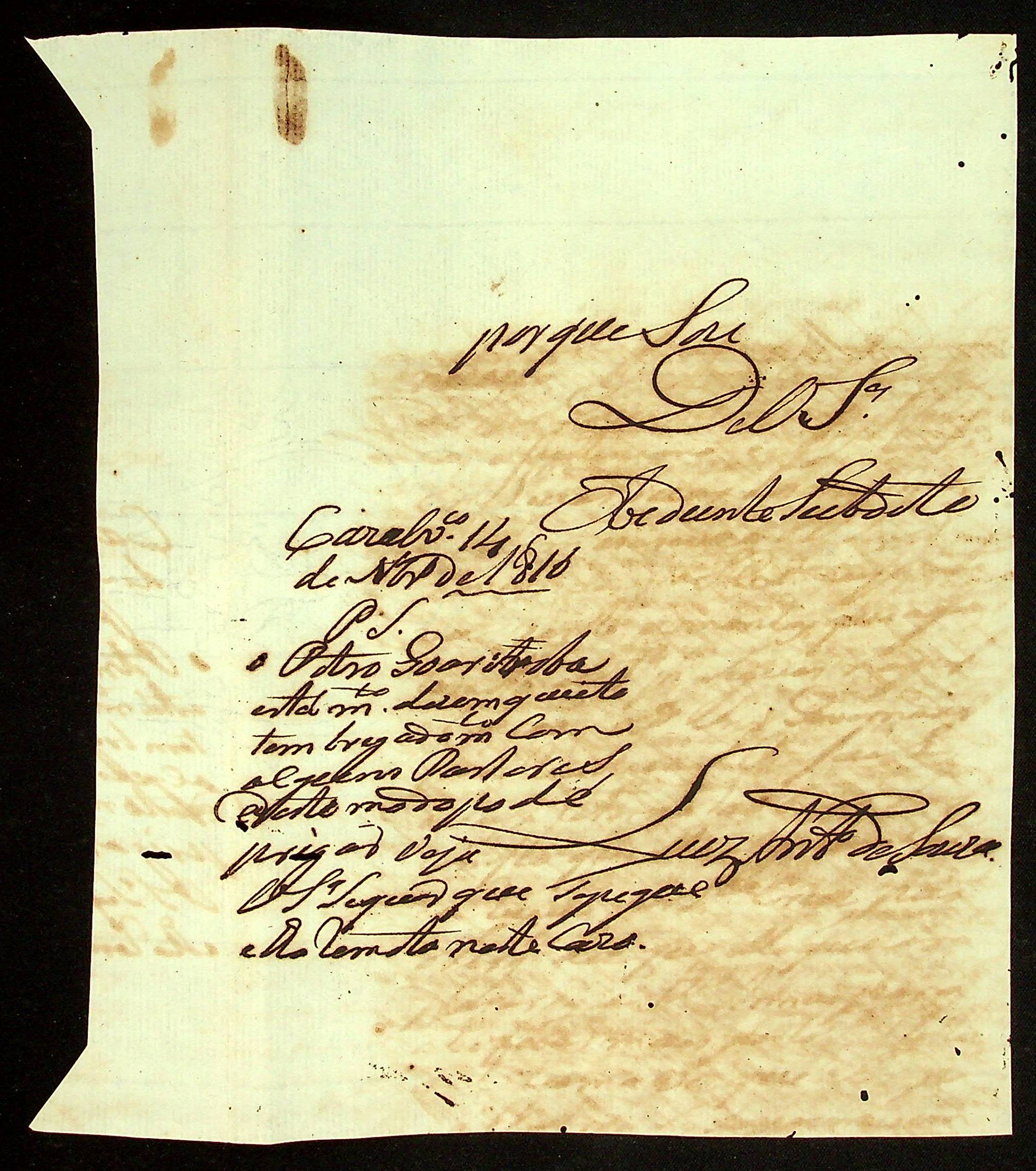 CARTA do [Alferes Comandante] Luiz Antônio de Souza ao Coronel Victoriano Lopes de Macedo.