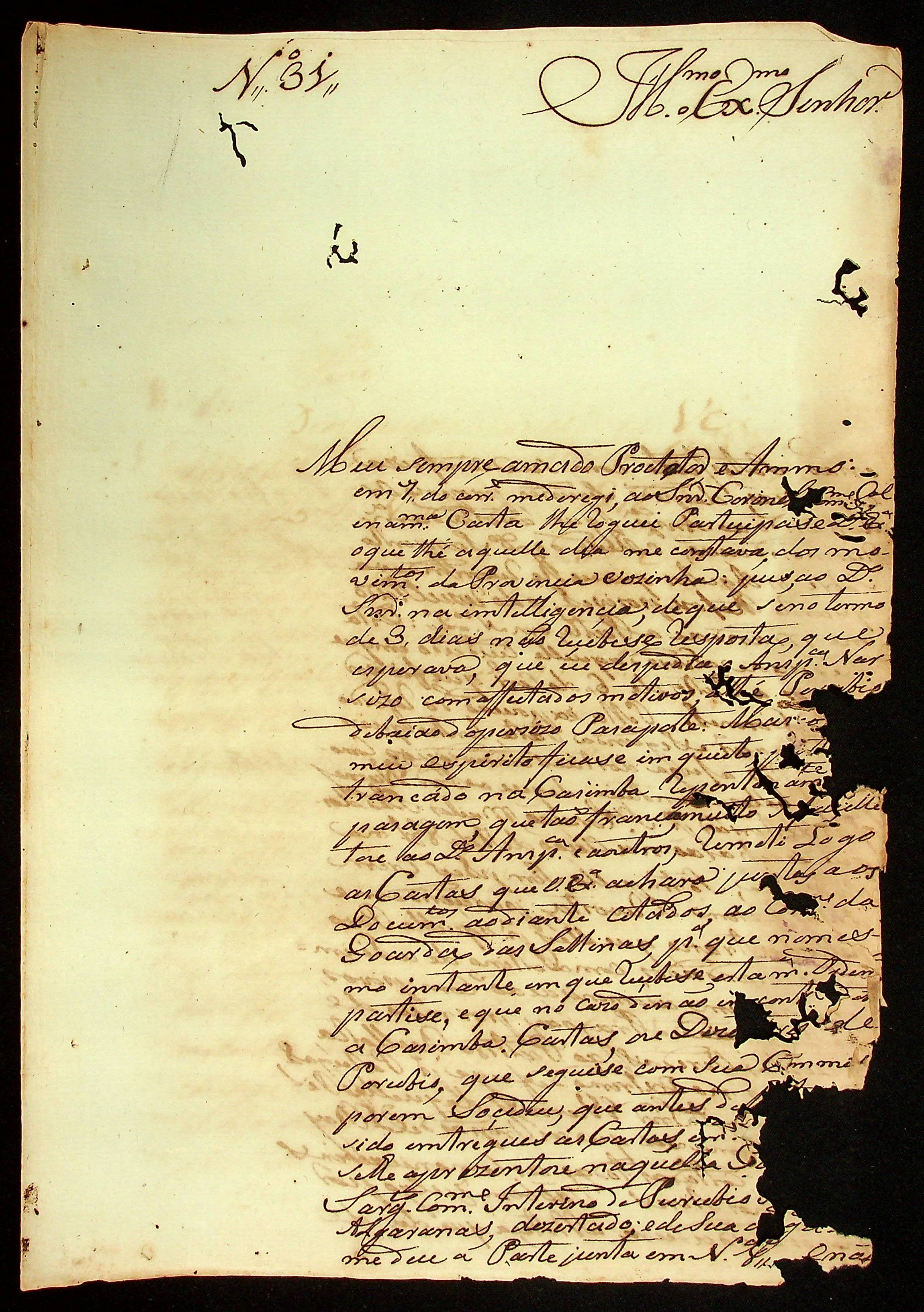 CARTA do [Alferes Comandante] Luiz Antônio de Souza ao [Governador e Capitão-General da Capitania de Mato Grosso] João Carlos Augusto d’Oeynhausen e Gravenberg.