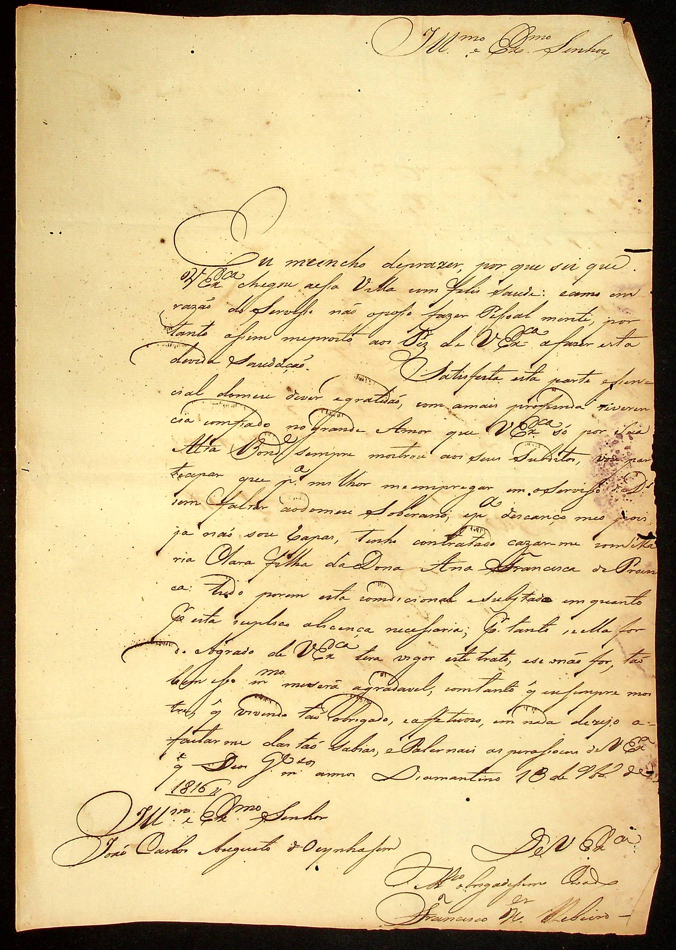 CARTA do [Capitão Comandante] Francisco Xavier Ribeiro ao [Governador e Capitão-General da Capitania de Mato Grosso] João Carlos Augusto d’Oeynhausen e Gravenberg.