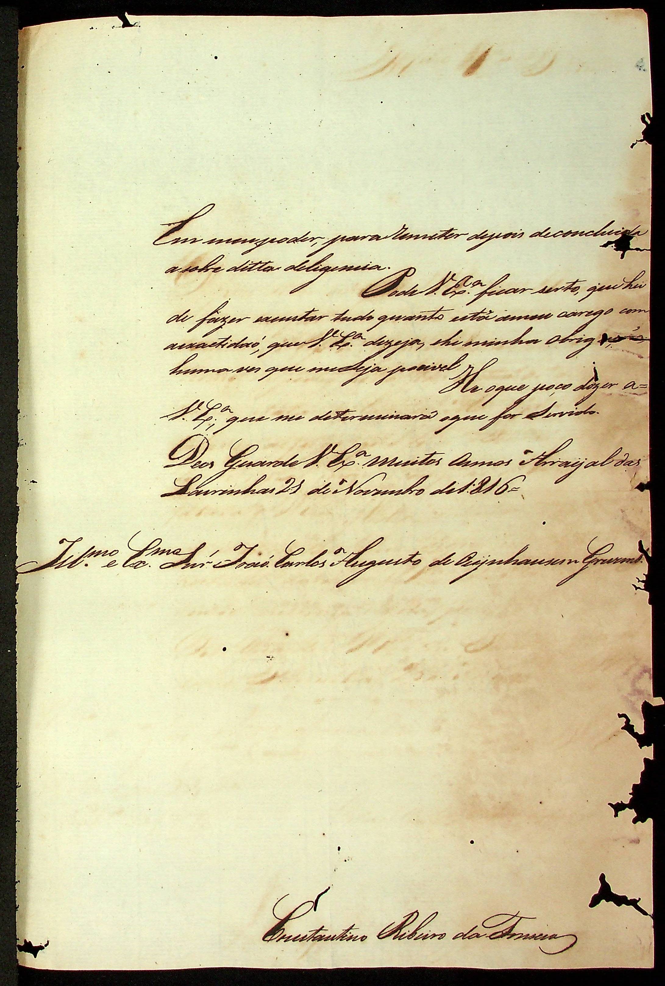 CARTA do [Tenente Constantino] Ribeiro da Fonseca ao [Governador e Capitão-General da Capitania de Mato Grosso] João Carlos Augusto d’Oeynhausen e Gravenberg.