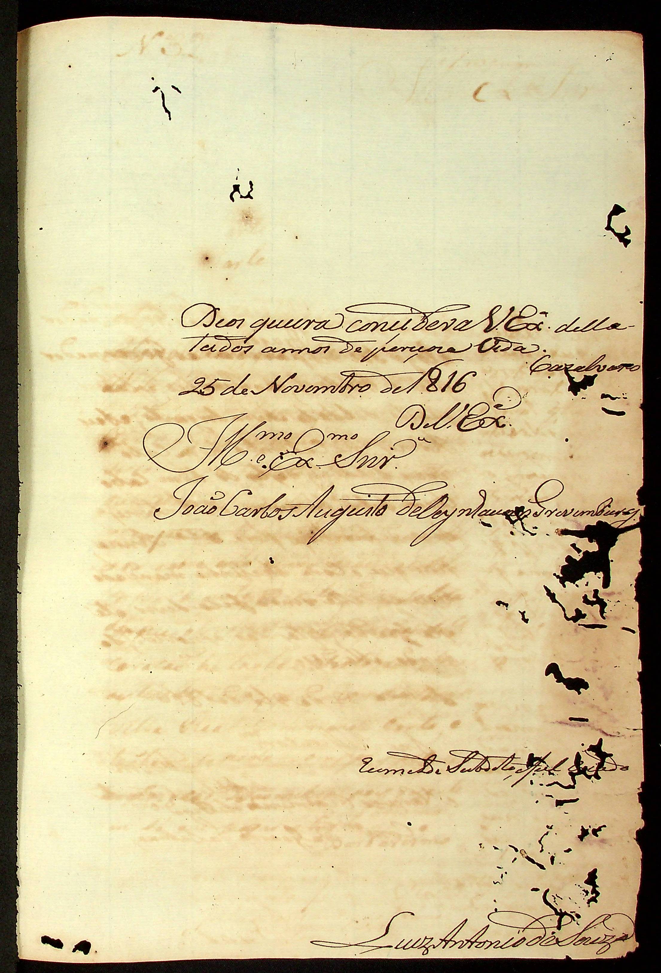 CARTA do [Alferes Comandante] Luiz Antônio de Souza ao [Governador e Capitão-General da Capitania de Mato Grosso] João Carlos Augusto d’Oeynhausen e Gravenberg.