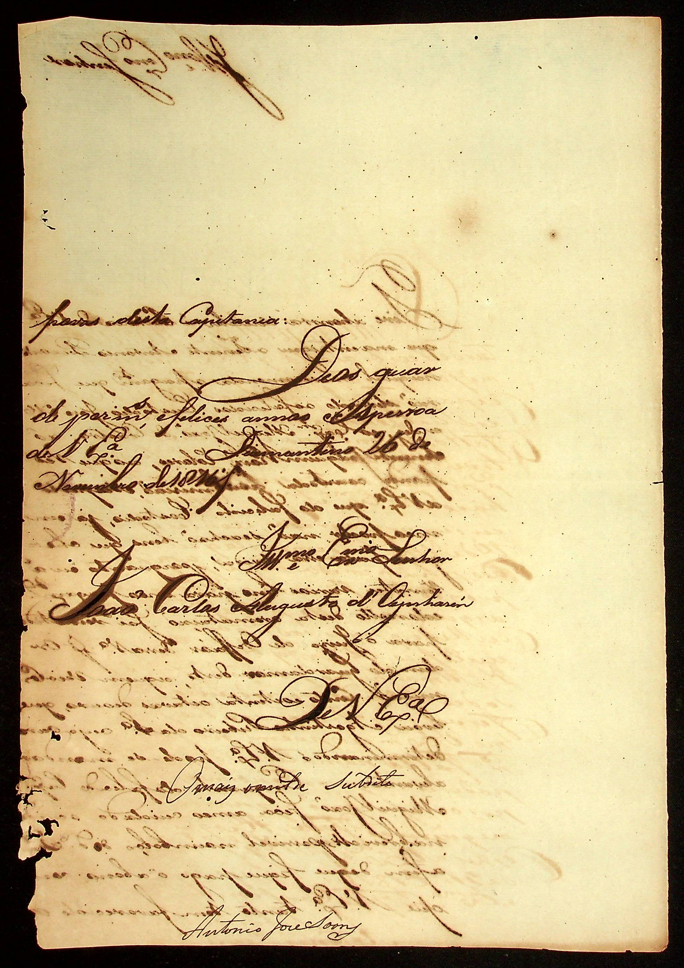 CARTA do [Alferes] Antônio José Soares ao [Governador e Capitão-General da Capitania de Mato Grosso] João Carlos Augusto d’Oeynhausen e Gravenberg.