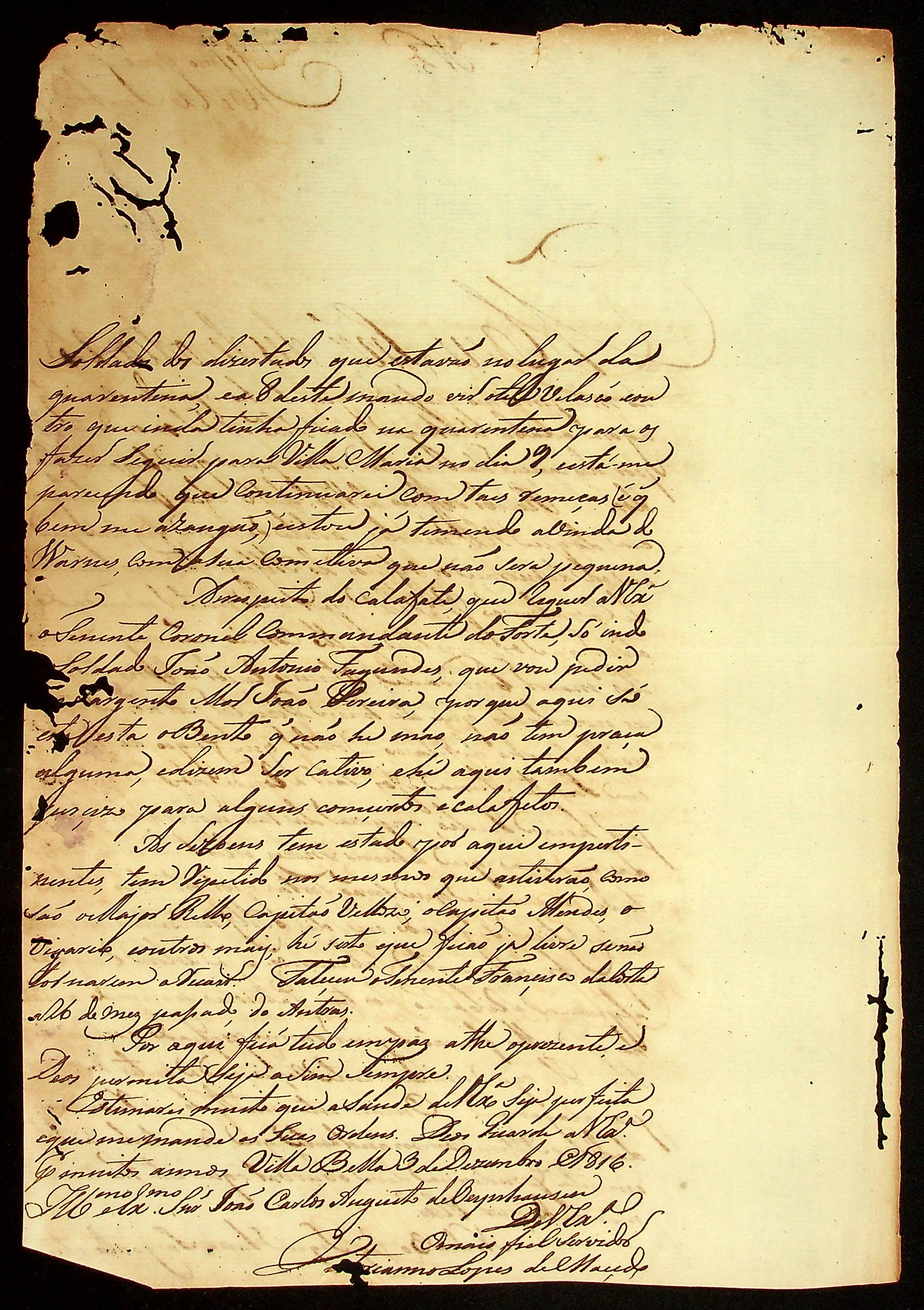 CARTA do [Coronel] Victoriano Lopes de Macedo ao [Governador e Capitão-General da Capitania de Mato Grosso] João Carlos Augusto d’Oeynhausen e Gravenberg.