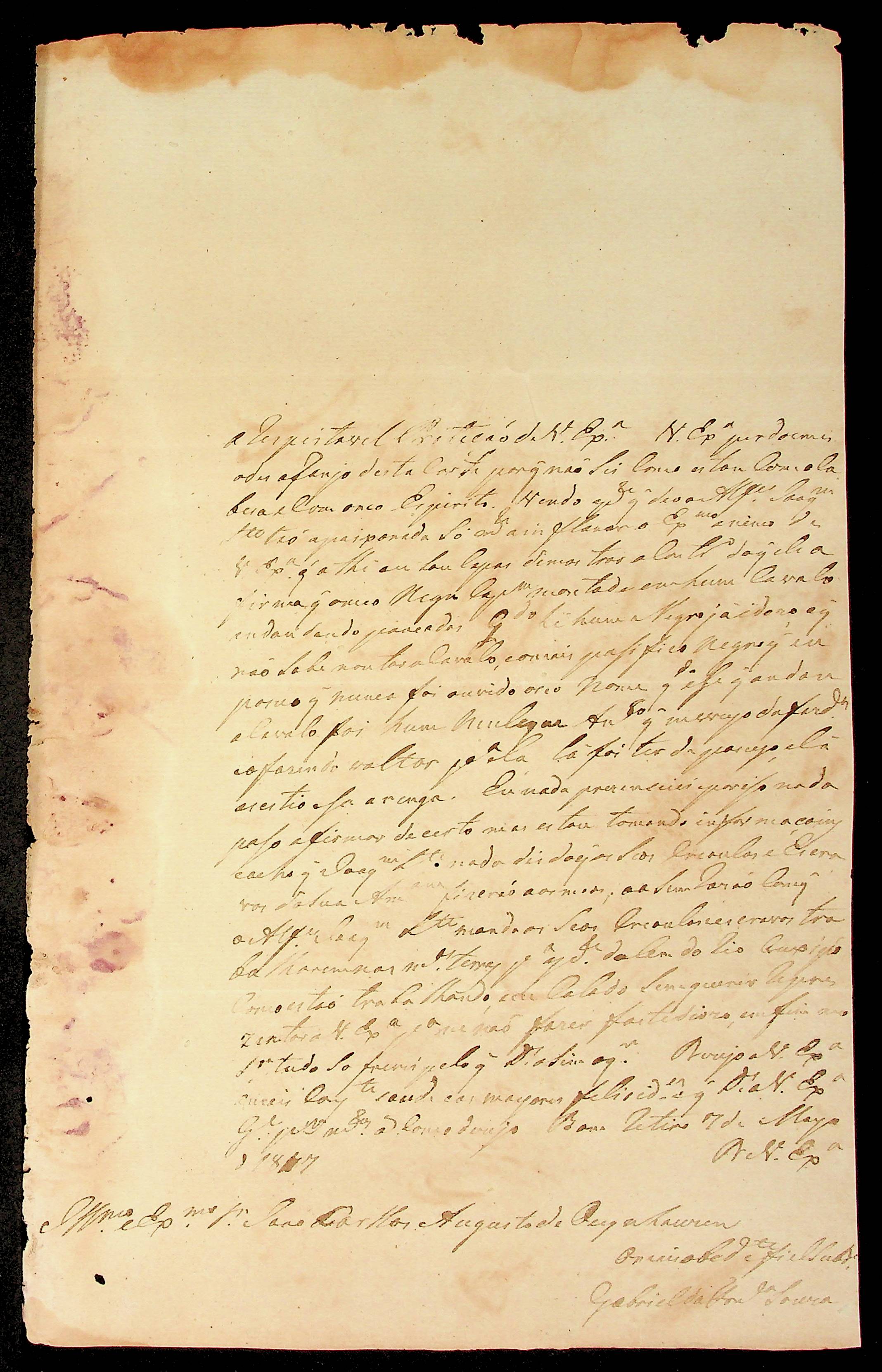 CARTA de Gabriel da Fonseca Souza ao [Governador e Capitão-General da Capitania de Mato Grosso] João Carlos Augusto d’Oeynhausen e Gravenberg.