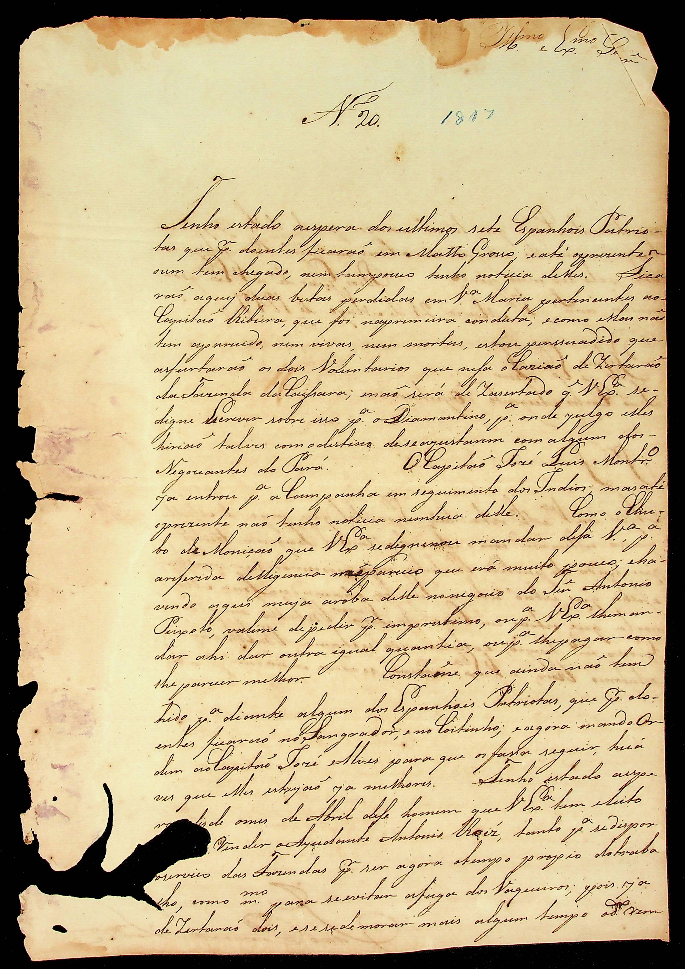 CARTA de João Pereira Leite ao [Governador e Capitão-General da Capitania de Mato Grosso] João Carlos Augusto d’Oeynhausen e Gravenberg.