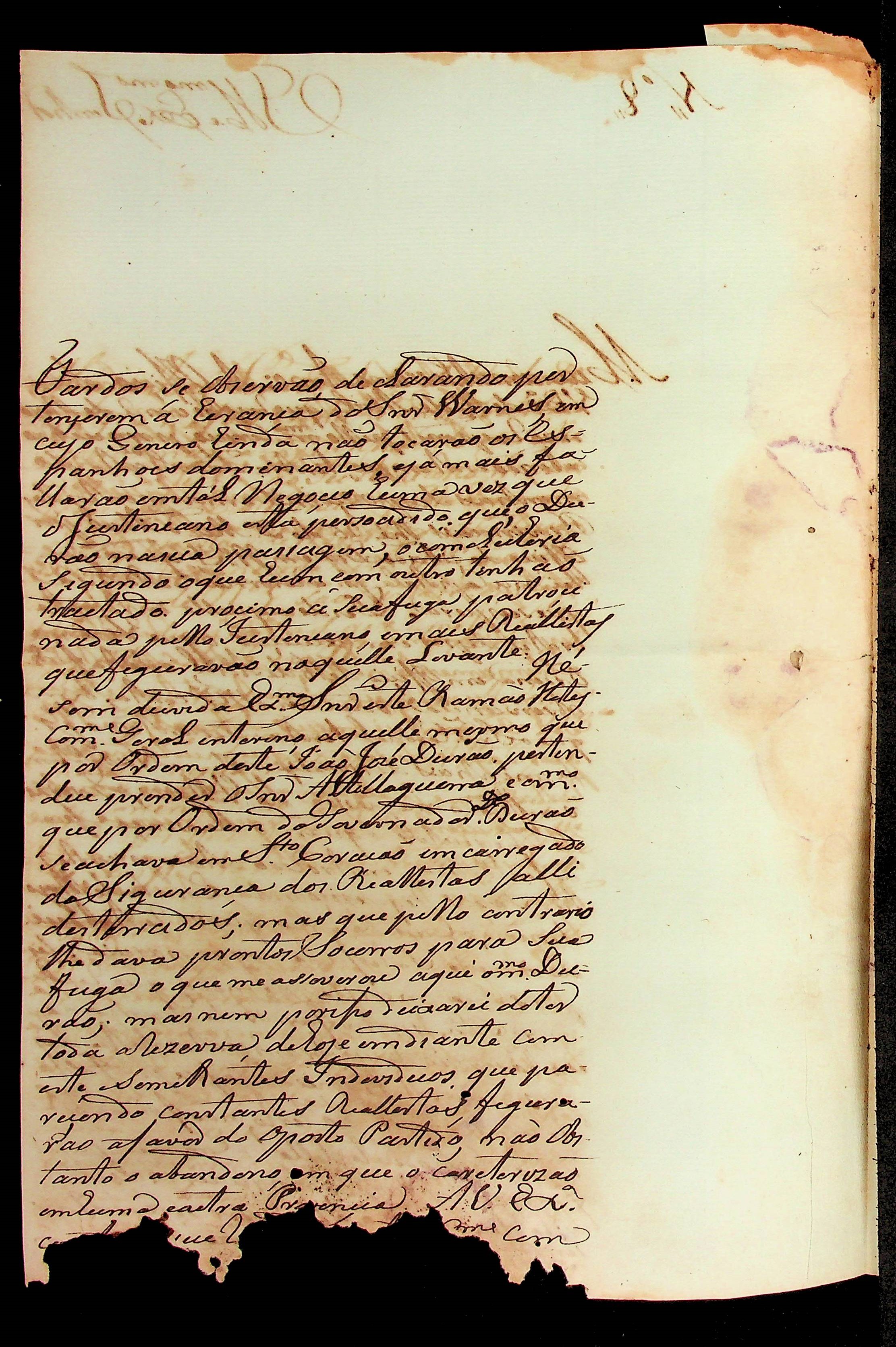 CARTA de [Luiz Antônio de Sousa] ao [Governador e Capitão-General da Capitania de Mato Grosso] João Carlos Augusto d’Oeynhausen e Gravenberg.