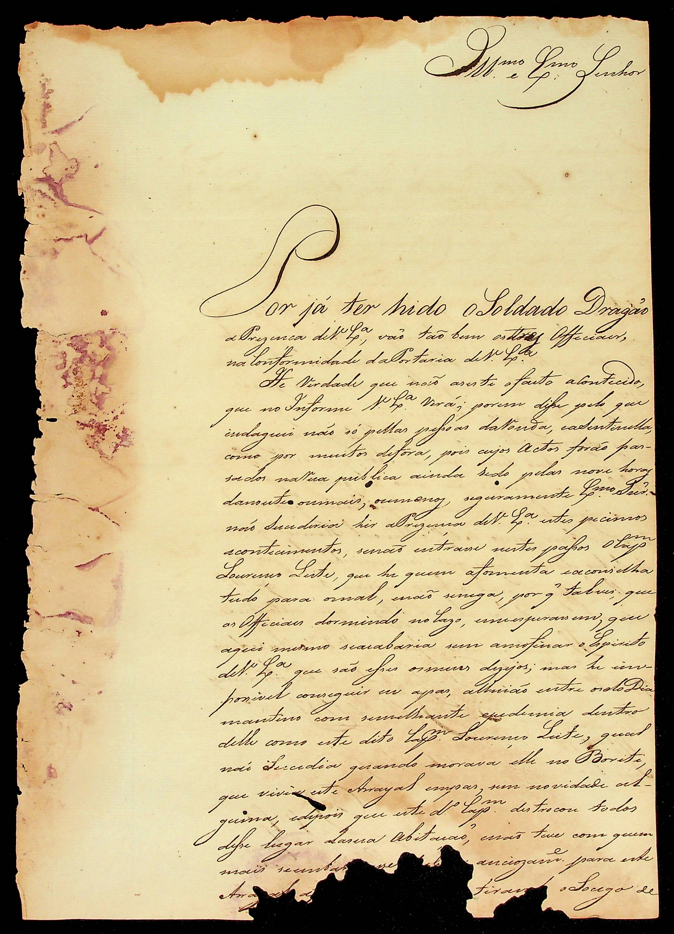 CARTA de [Francisco Xavier Ribeiro] enviada ao Governador e Capitão-General da Capitania de Mato Grosso João Carlos Augusto d’Oeynhausen e Gravenberg.