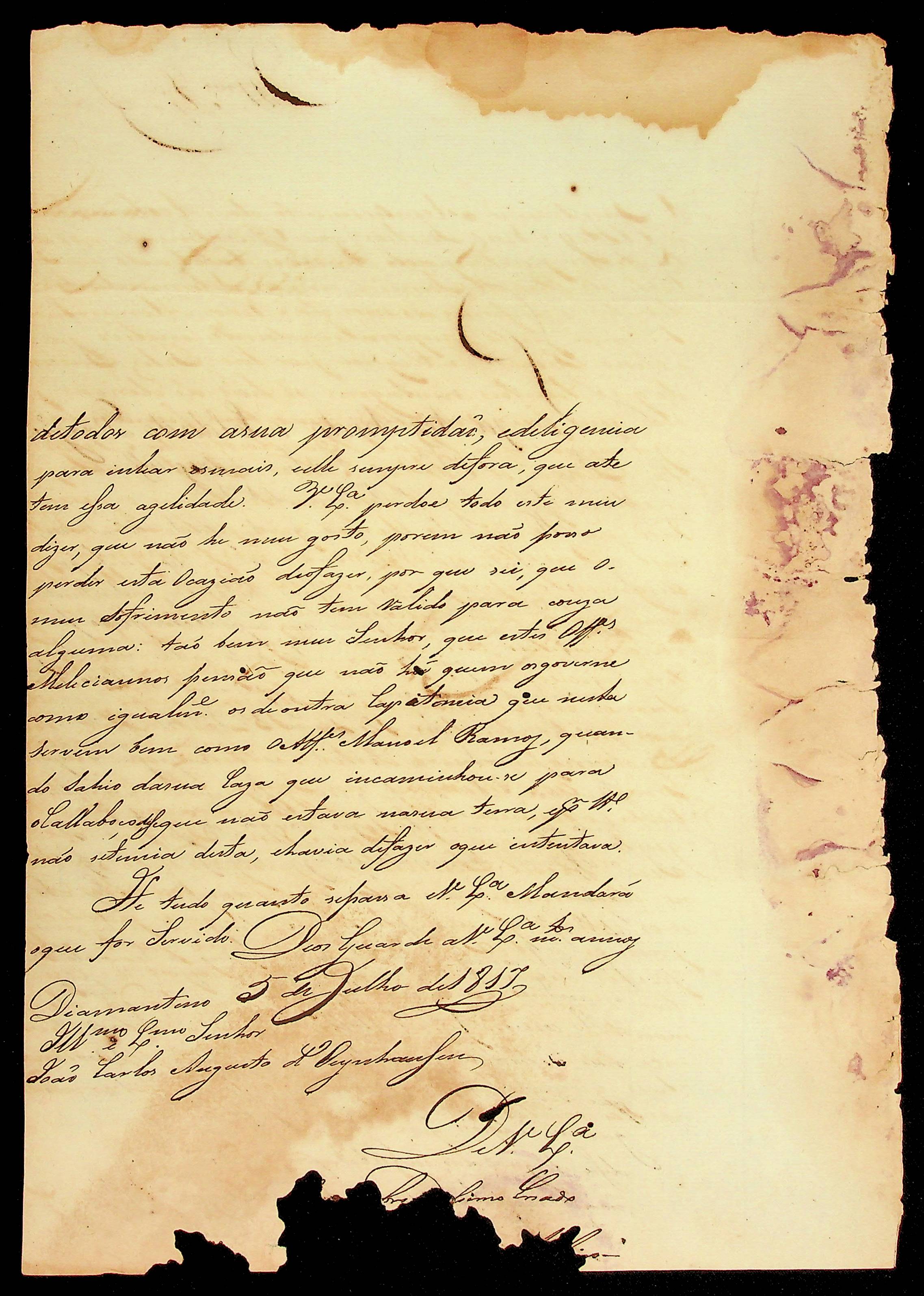 CARTA de [Francisco Xavier Ribeiro] enviada ao Governador e Capitão-General da Capitania de Mato Grosso João Carlos Augusto d’Oeynhausen e Gravenberg.