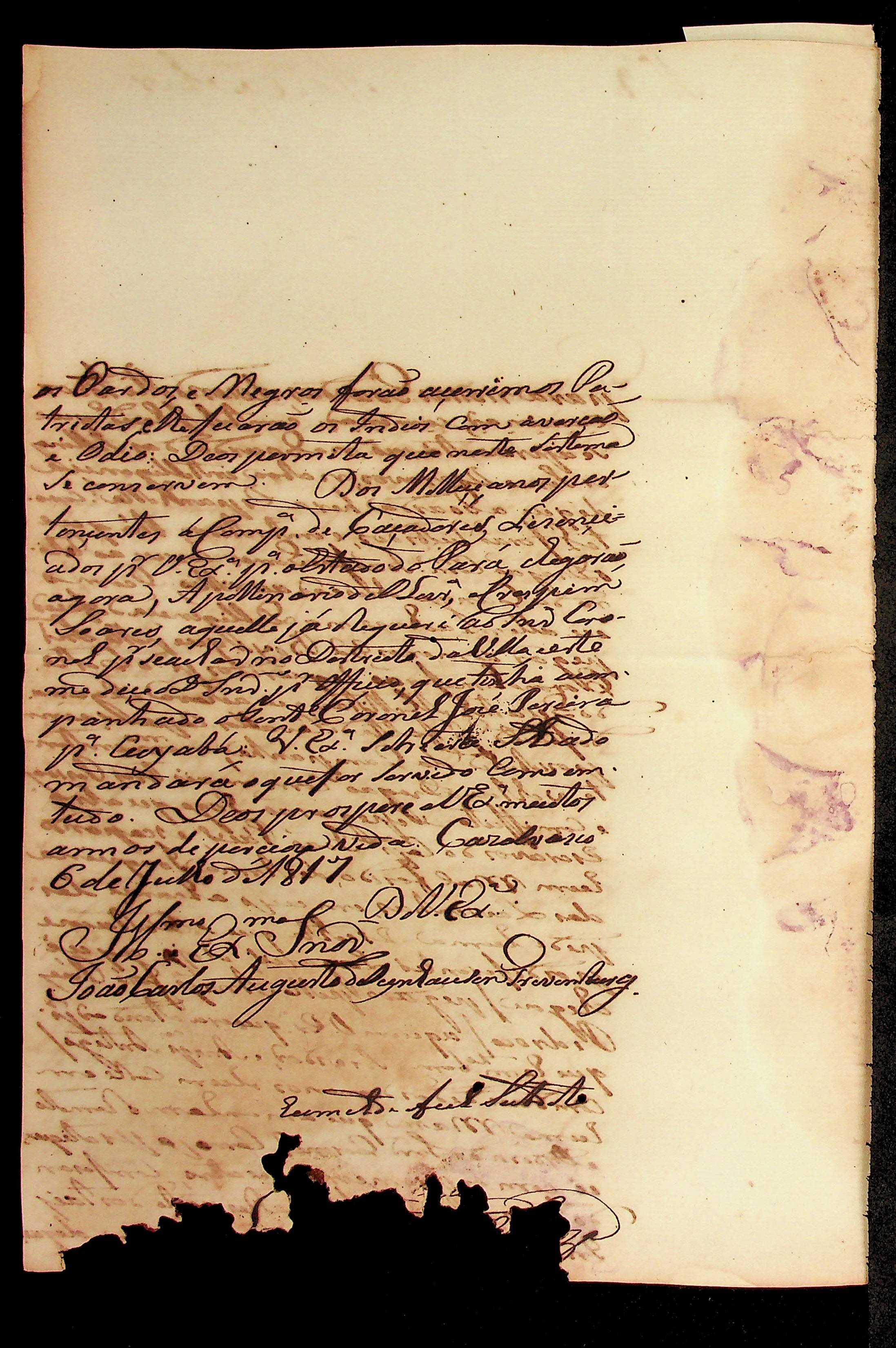 CARTA de [Luís Antônio de Souza] ao [Governador e Capitão-General da Capitania de Mato Grosso] João Carlos Augusto d’Oeynhausen e Gravenberg.