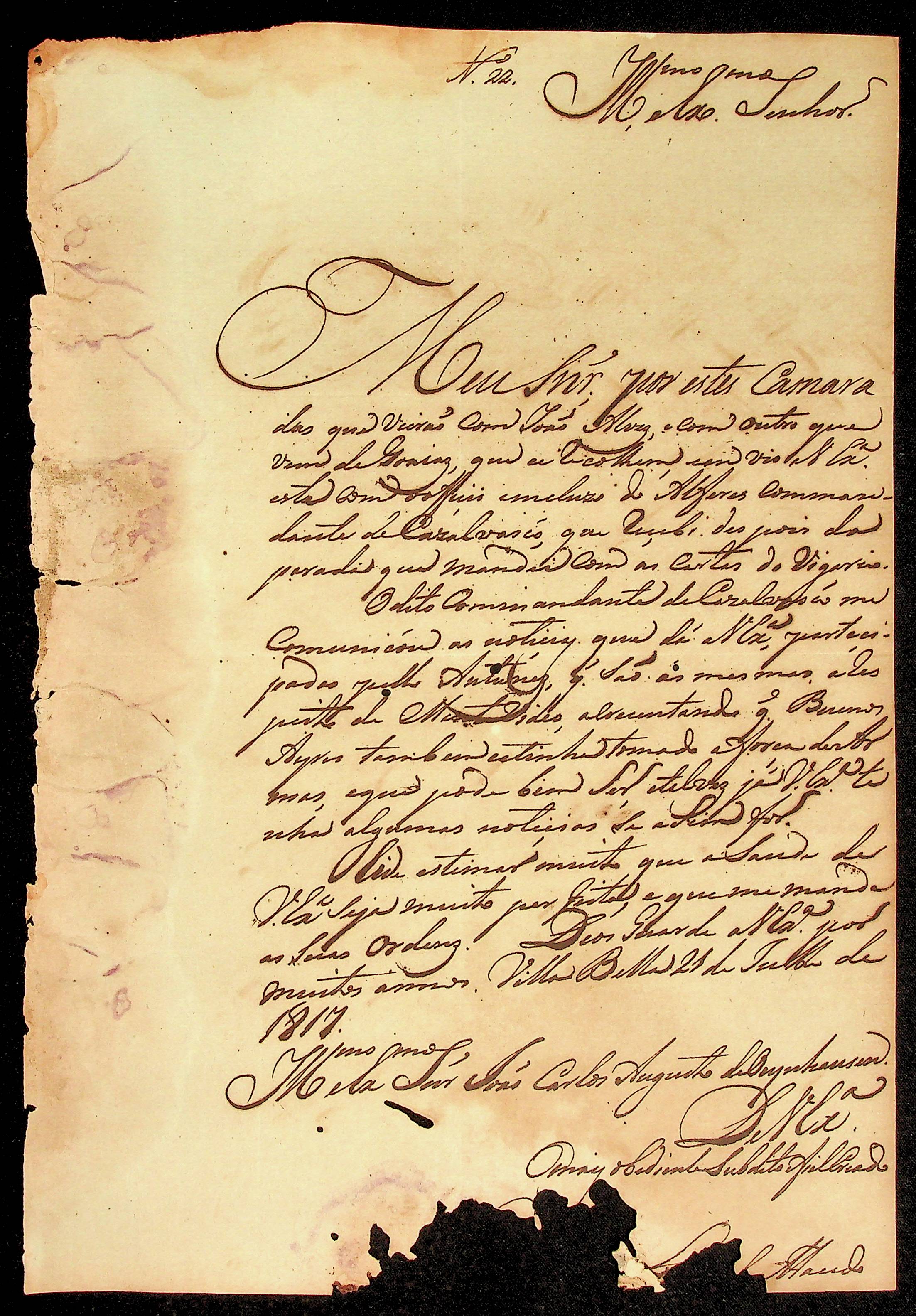 CARTA do [Coronel Victoriano Lopes de Macedo] ao [Governador e Capitão-General da Capitania de Mato Grosso] João Carlos Augusto d’Oeynhausen e Gravenberg.