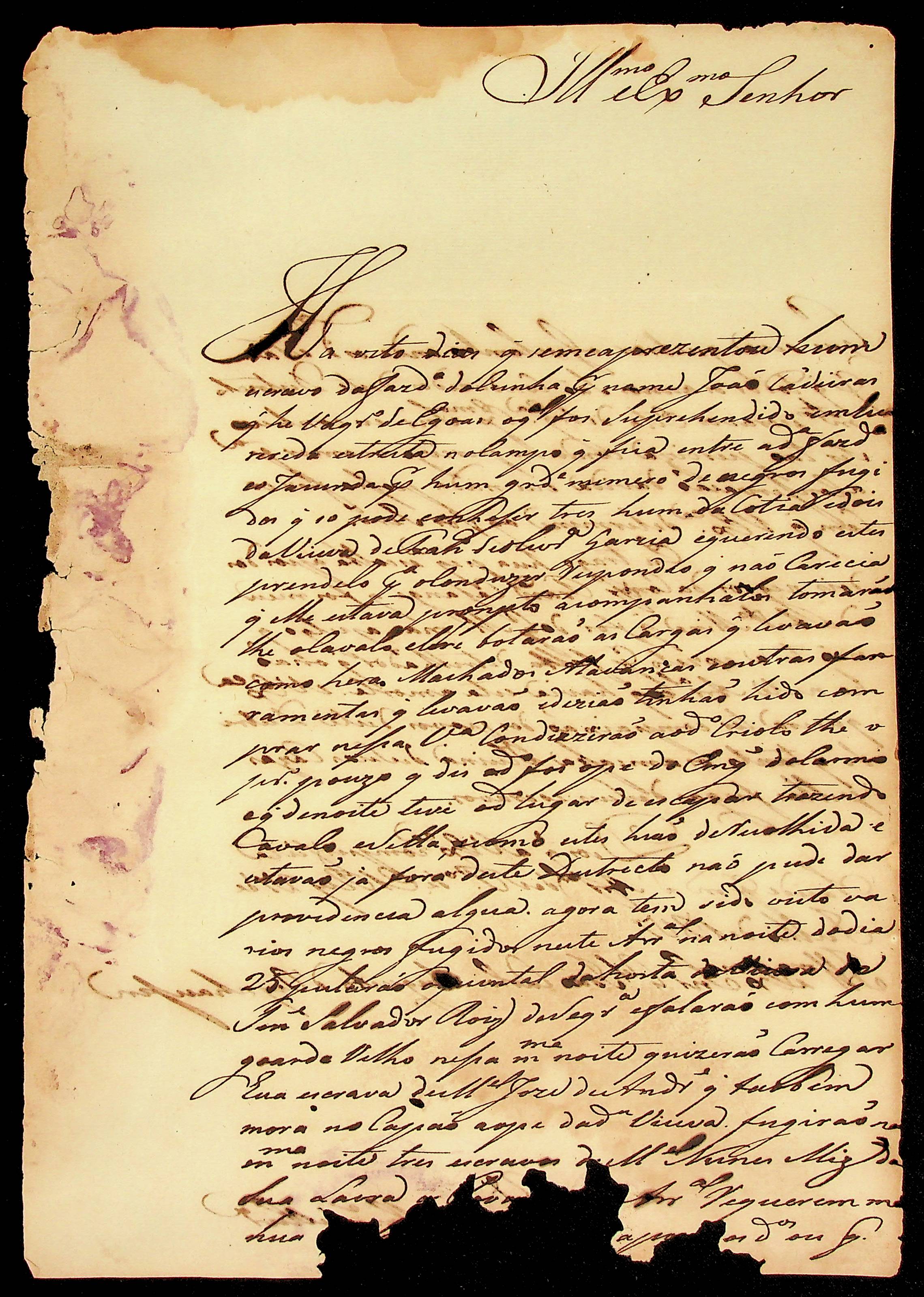 CARTA [Capitão Comandante Vicente Marques de Oliveira] ao [Governador e Capitão-General da Capitania de Mato Grosso] João Carlos Augusto d’Oeynhausen e Gravenberg.