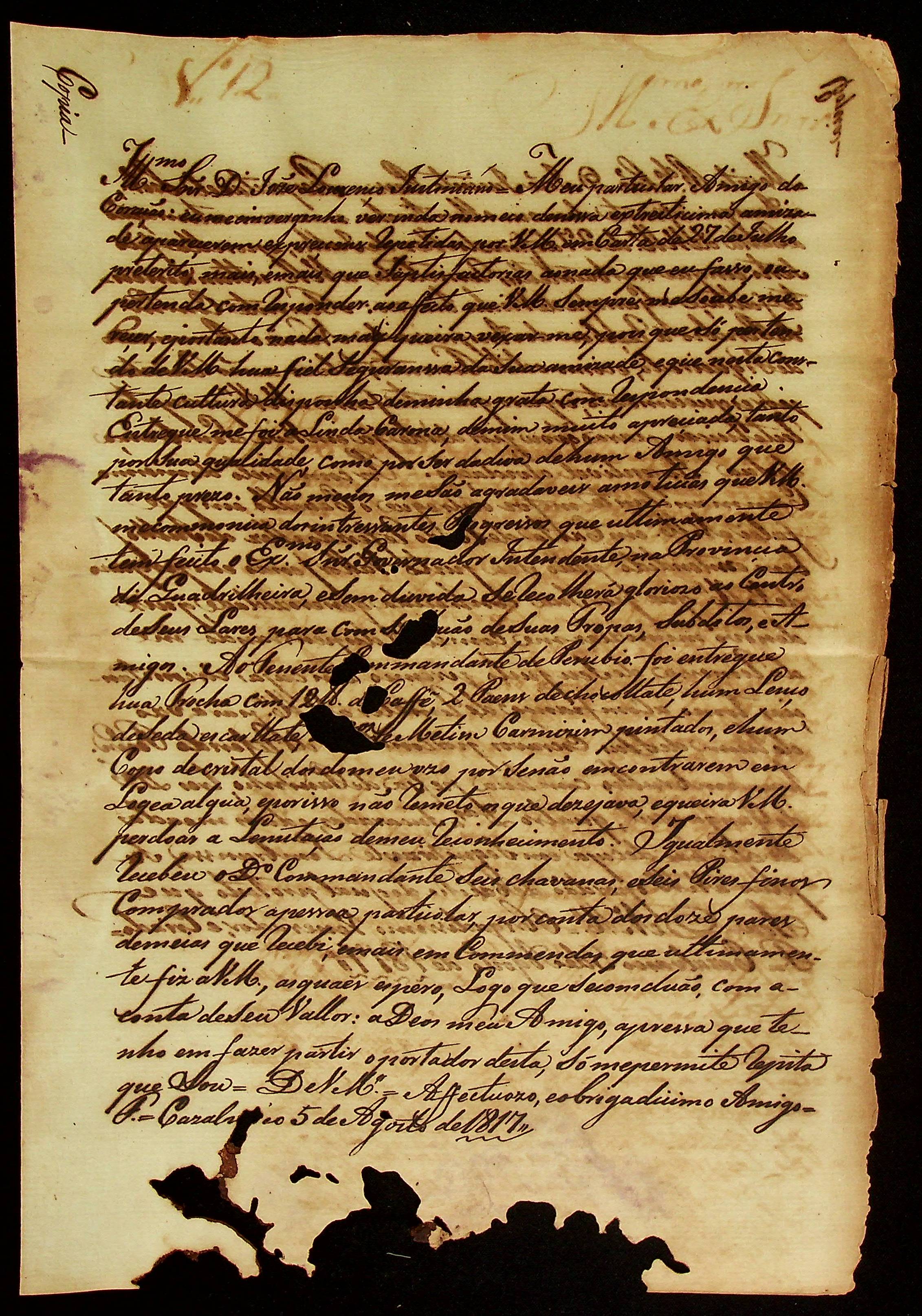 CARTA (cópia) de [Luiz Antônio de Souza] à José Lourenço Justiniano.