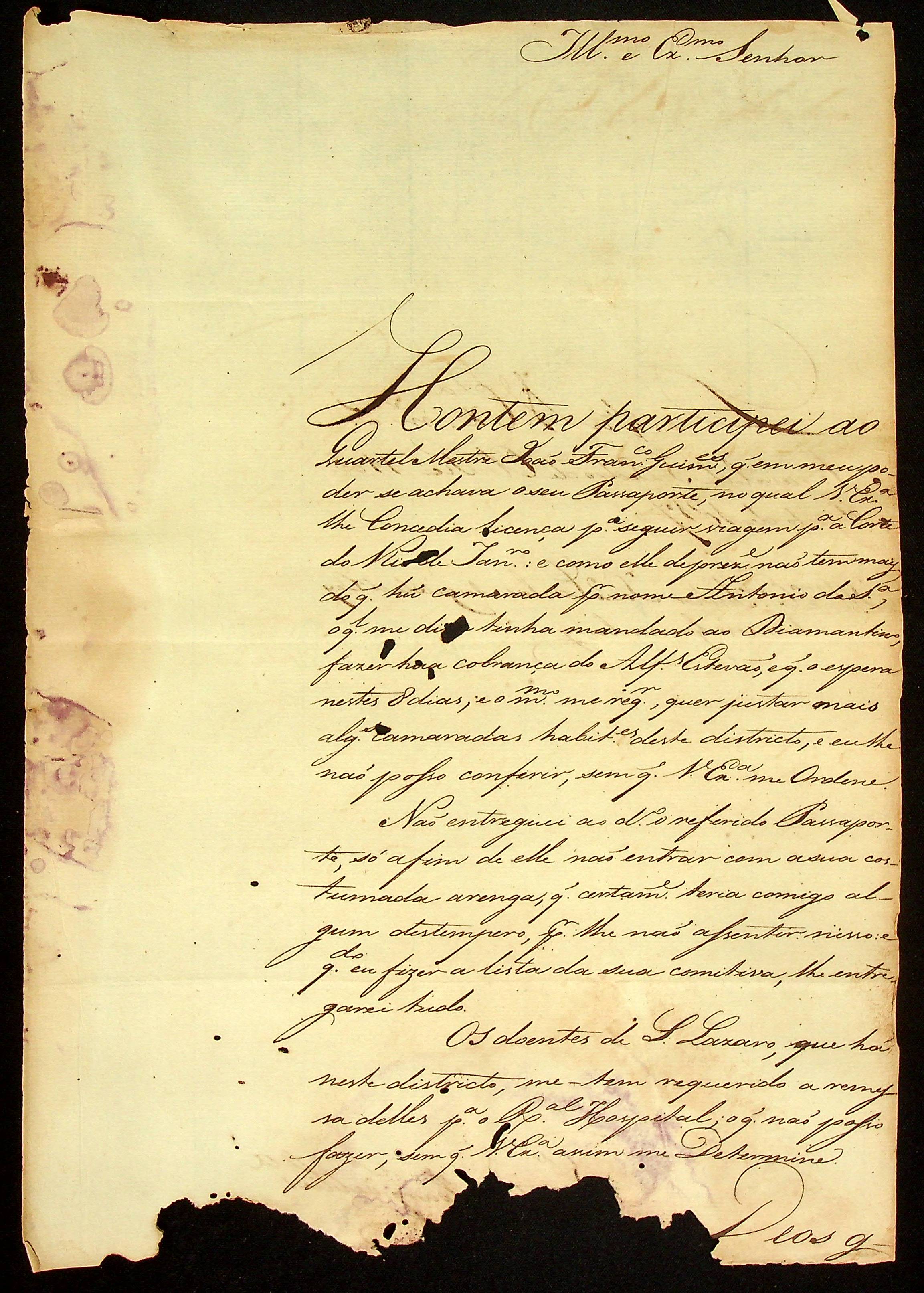 CARTA do [Capitão Comandante Vicente Marques de Oliveira] ao [Governador e Capitão-General da Capitania de Mato Grosso] João Carlos Augusto d’Oeynhausen e Gravenberg.