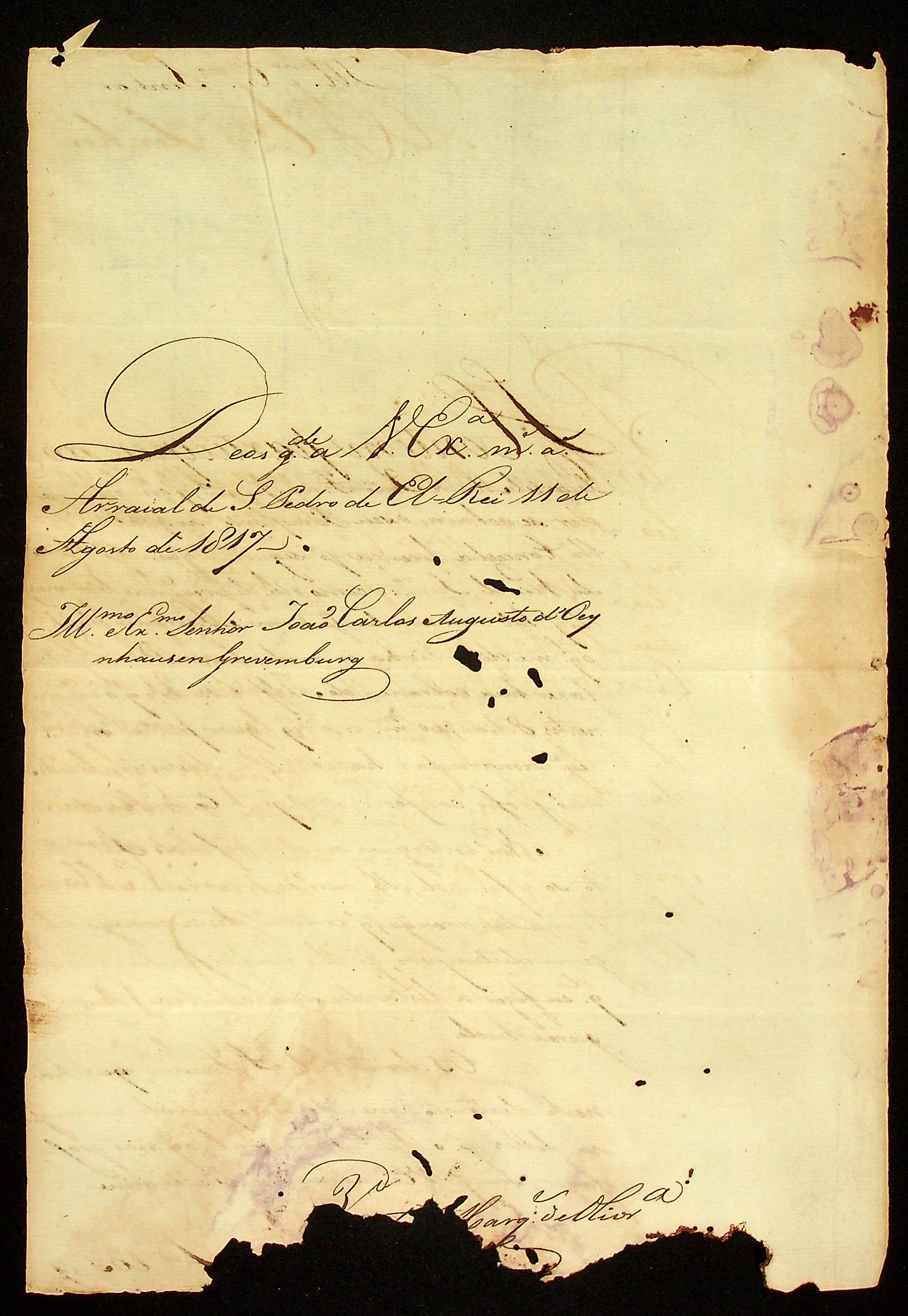 CARTA do [Capitão Comandante Vicente Marques de Oliveira] ao [Governador e Capitão-General da Capitania de Mato Grosso] João Carlos Augusto d’Oeynhausen e Gravenberg.