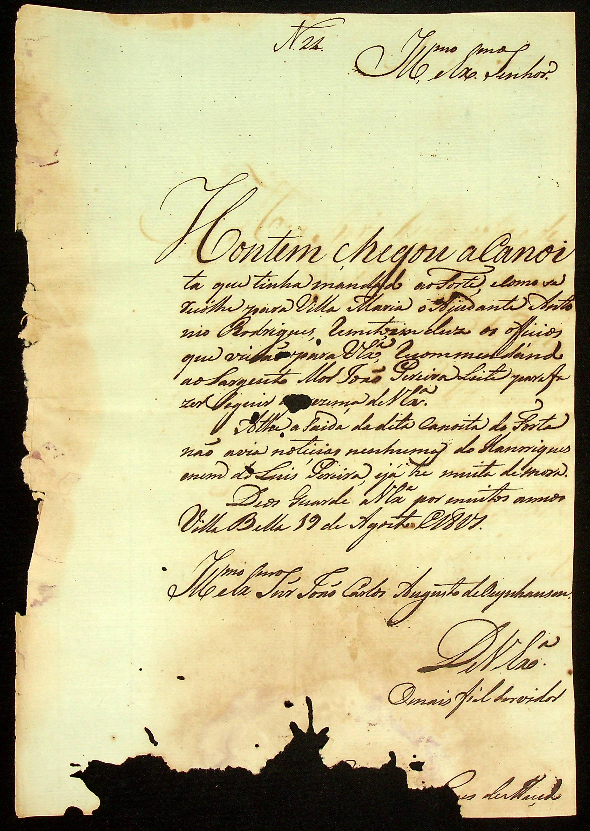 CARTA do [Coronel Victoriano Lopes de Macedo] ao [Governador e Capitão-General da Capitania de Mato Grosso] João Carlos Augusto d’Oeynhausen e Gravenberg.