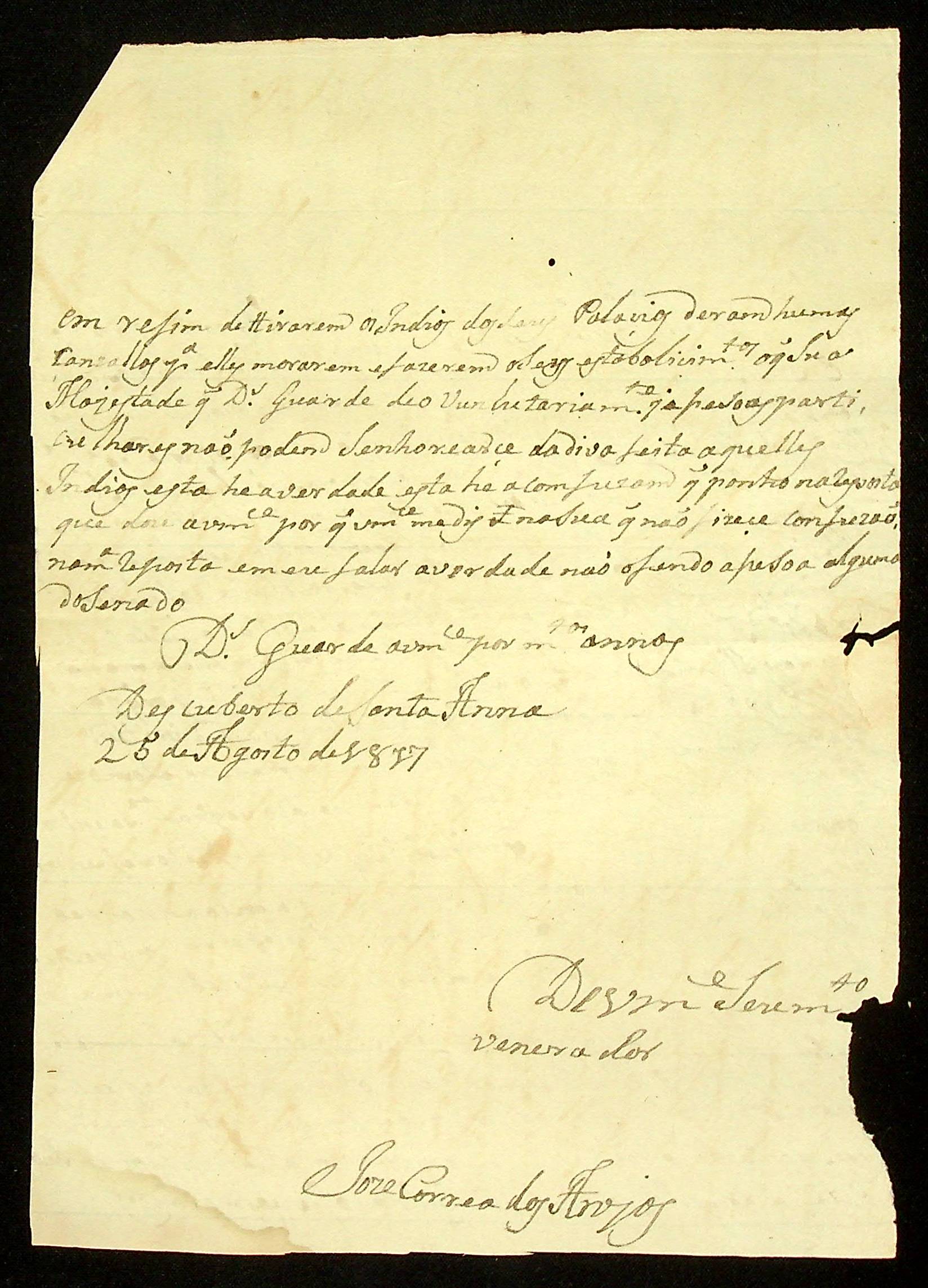 CARTA de José Corrêa dos Anjos ao Alferes Jacinto Gomes da Costa.