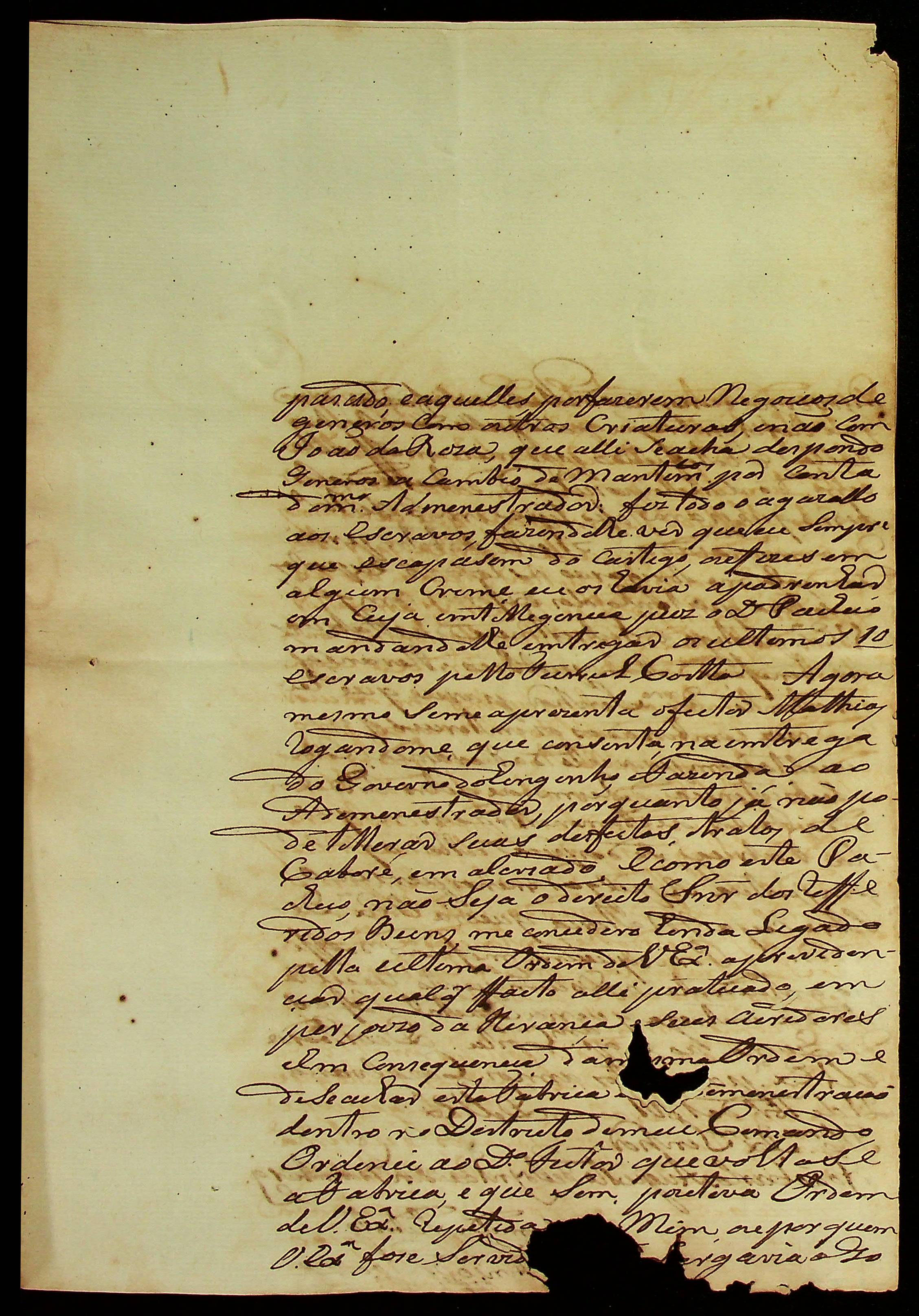 CARTA do Alferes Comandante Luís Antônio de Sousa ao [Governador e Capitão-General da Capitania de Mato Grosso] João Carlos Augusto d’Oeynhausen e Gravenberg.