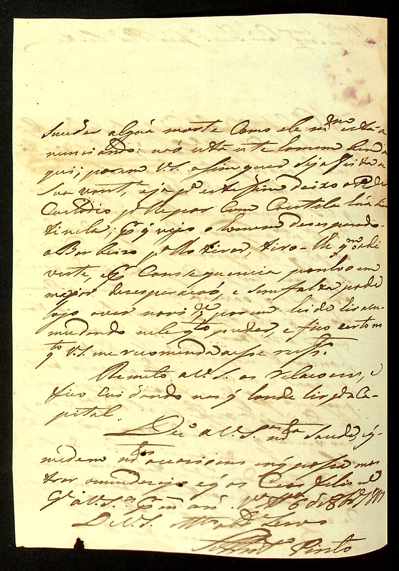 CARTA de Antônio Pinto ao Sargento-mor Comandante Geral João Pereira Leite.