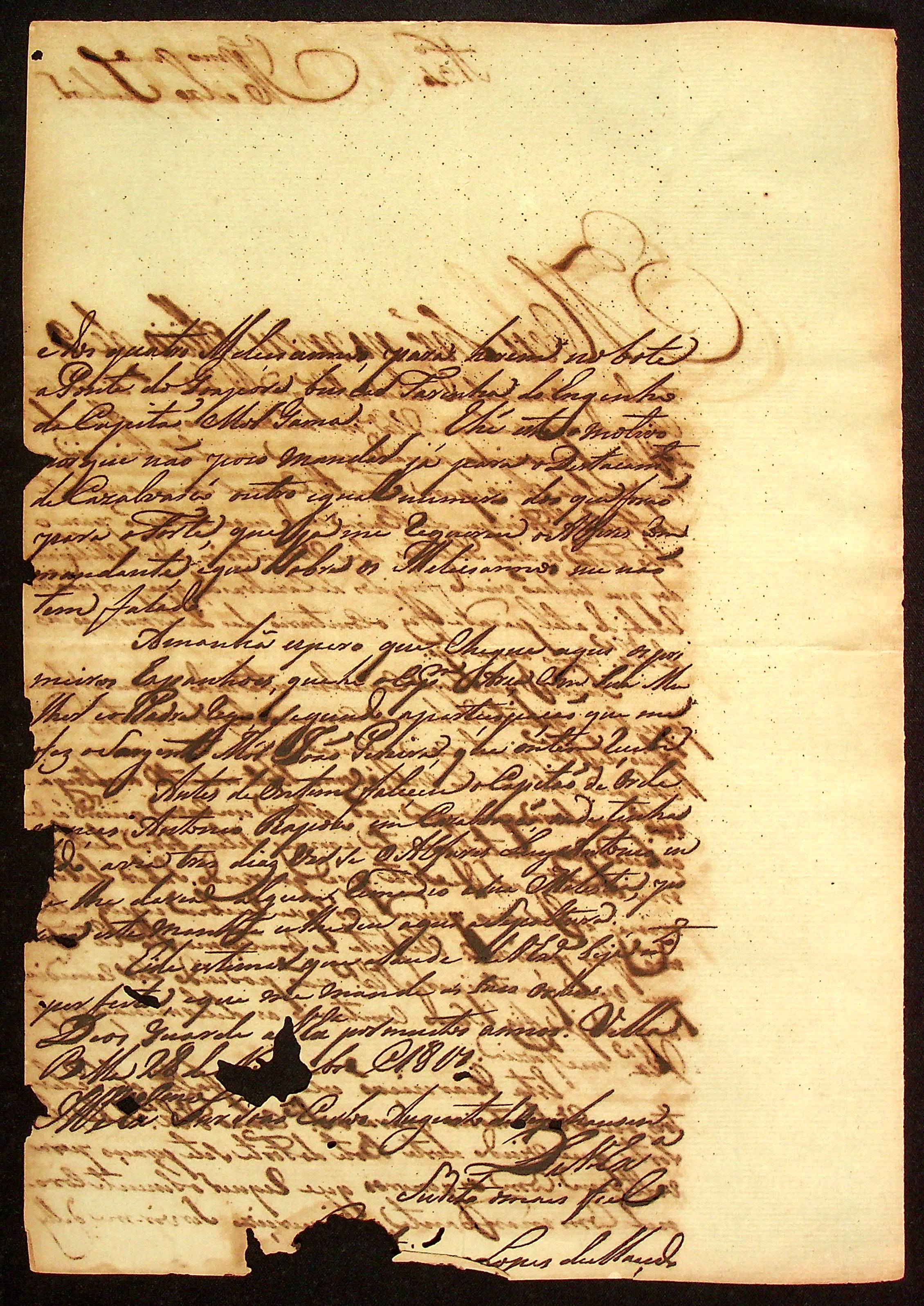 CARTA do [Coronel Comandante] [Victoriano] Lopes de Macedo ao [Governador e Capitão-General da Capitania de Mato Grosso] João Carlos Augusto d’Oeynhausen e Gravenberg.