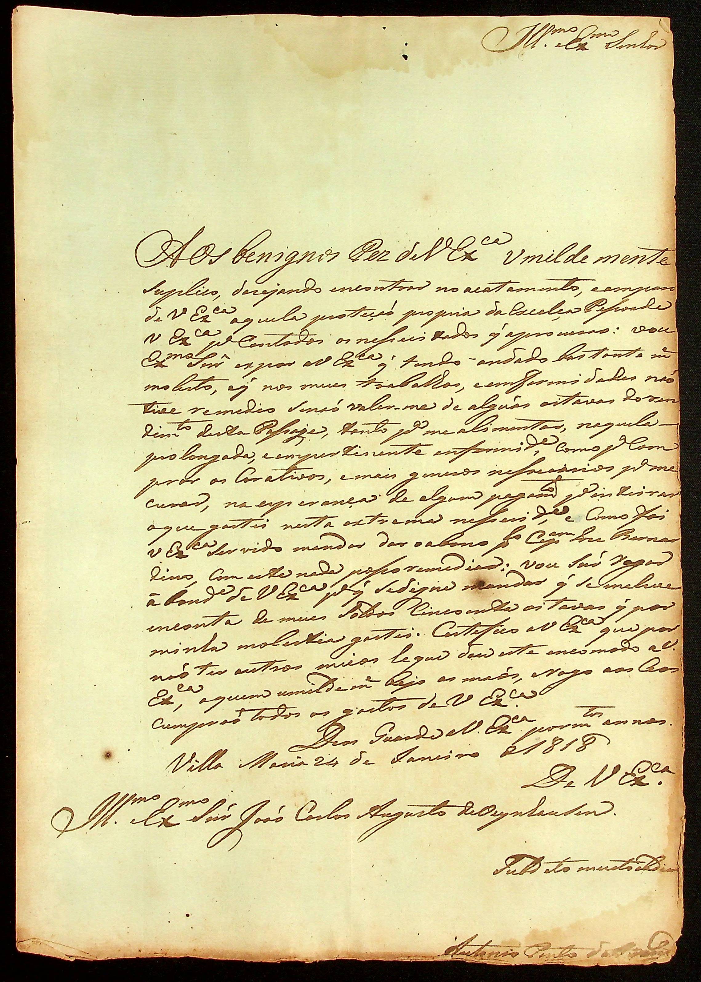 CARTA de Antônio Pinto de Miranda ao [Governador e Capitão-General da Capitania de Mato Grosso] João Carlos Augusto d’Oeynhausen e Gravenberg.