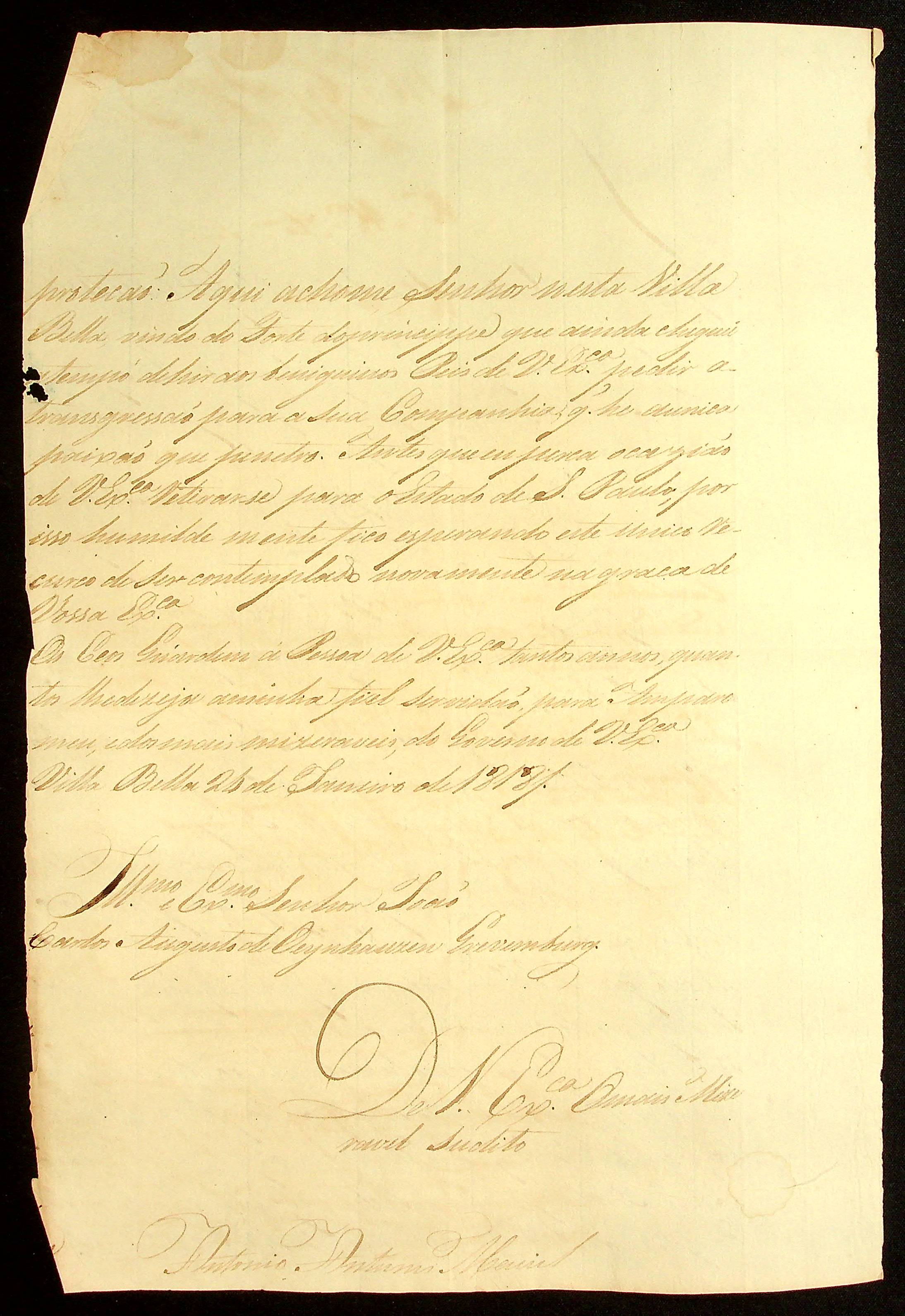 CARTA de Antônio Antunes Maciel ao [Governador e Capitão-General da Capitania de Mato Grosso] João Carlos Augusto d’Oeynhausen e Gravenberg.