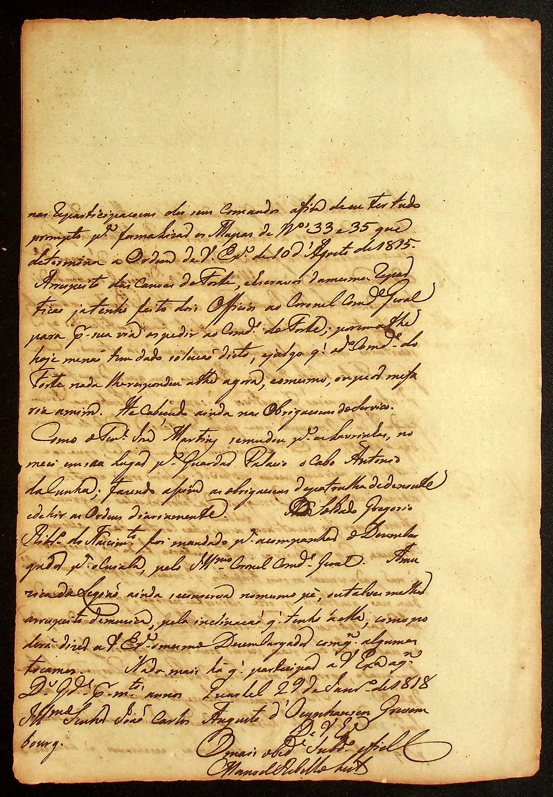 CARTA do [Sargento-mor] Manoel [Rabelo] Leite ao [Governador e Capitão-General da Capitania de Mato Grosso] João Carlos Augusto d’Oeynhausen e Gravenberg.