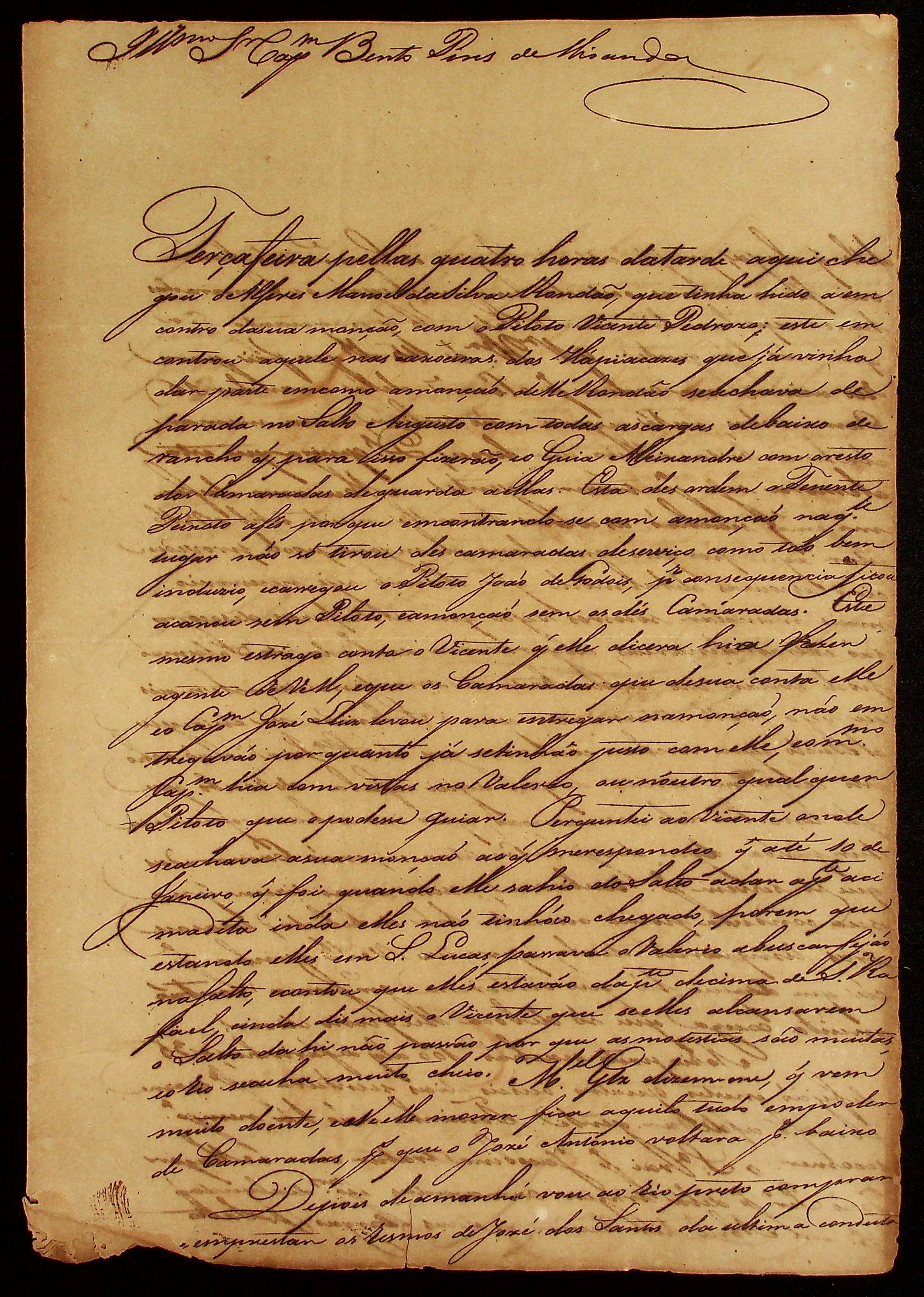 CARTA de Francisco Xavier Ribeiro ao [Governador e Capitão-General da Capitania de Mato Grosso] João Carlos Augusto d’Oeynhausen e Gravenberg.